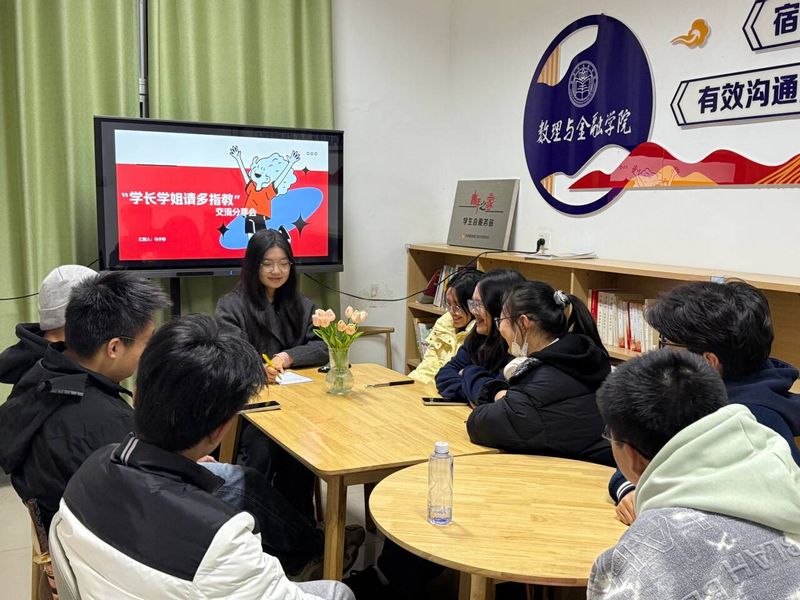 12月1日,数理与金融学院在学院学生社区工作站——女12栋评理说事大课堂举办“学长学姐请多指教”活动。金融231班马子睿聚焦大学生综合发展规划与多元能力提升进行了经验分享,学院2025级学生代表参加了活动。
