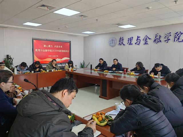 1月15日下午,数理与金融学院“凝心聚力 共话未来”新春座谈会在学院1610会议室举行。学院党政领导班子与17名教师代表共聚一堂,围绕教育教学、科学研究、管理服务与个人发展等主题深入交流,共谋学院发展。座谈会由院长吴小太主持。