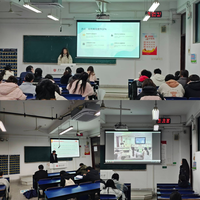 三位同学结合自身经历,从不同维度诠释“心怀责任,励志成才”的深刻内涵:马子睿立足专业特色,分享了高效学习方法与参与学生工作的经验,讲解如何平衡学业与实践,鼓励同学们坚定理想信念,将个人发展融入时代需求,在脚踏实地中践行责任担当;杨梦凡聚焦志愿服务与学科竞赛两大赛道,讲述了投身公益服务的初心与收获,分享了大学各阶段学科竞赛清单,介绍了大赛的备战经验,用亲身经历证明在奉献中传递温度、在挑战中锤炼本领的成长路径;赵亚飞则解读了区块链工程专业的就业方向与核心技能要求,讲解了SMART目标制定法,为同学们提供了清晰的学业规划与职业发展指引。