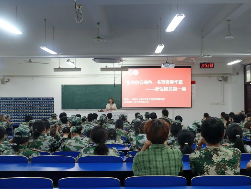 9月26日,生物与食品工程学院在6J111举办了以“坚守信仰底色,书写青春华章”为主题的新生团员第一课。本次课程由学院团委书记何祥玲主讲,2025级120余名新生团员共同参加。