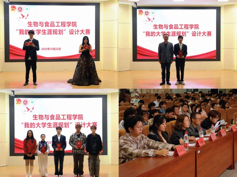 10月22日晚,生物与食品工程学院2025年大学生涯规划设计大赛决赛在学术报告厅圆满落幕。学院党委副书记王彦青、团委书记何祥玲以及学生代表担任大赛评委,全体2025级新生参加活动。经现场评审,生工252李明煜荣获一等奖,生制252徐启恒等2名同学荣获二等奖,生制252李懿泽等3名同学荣获三等奖。