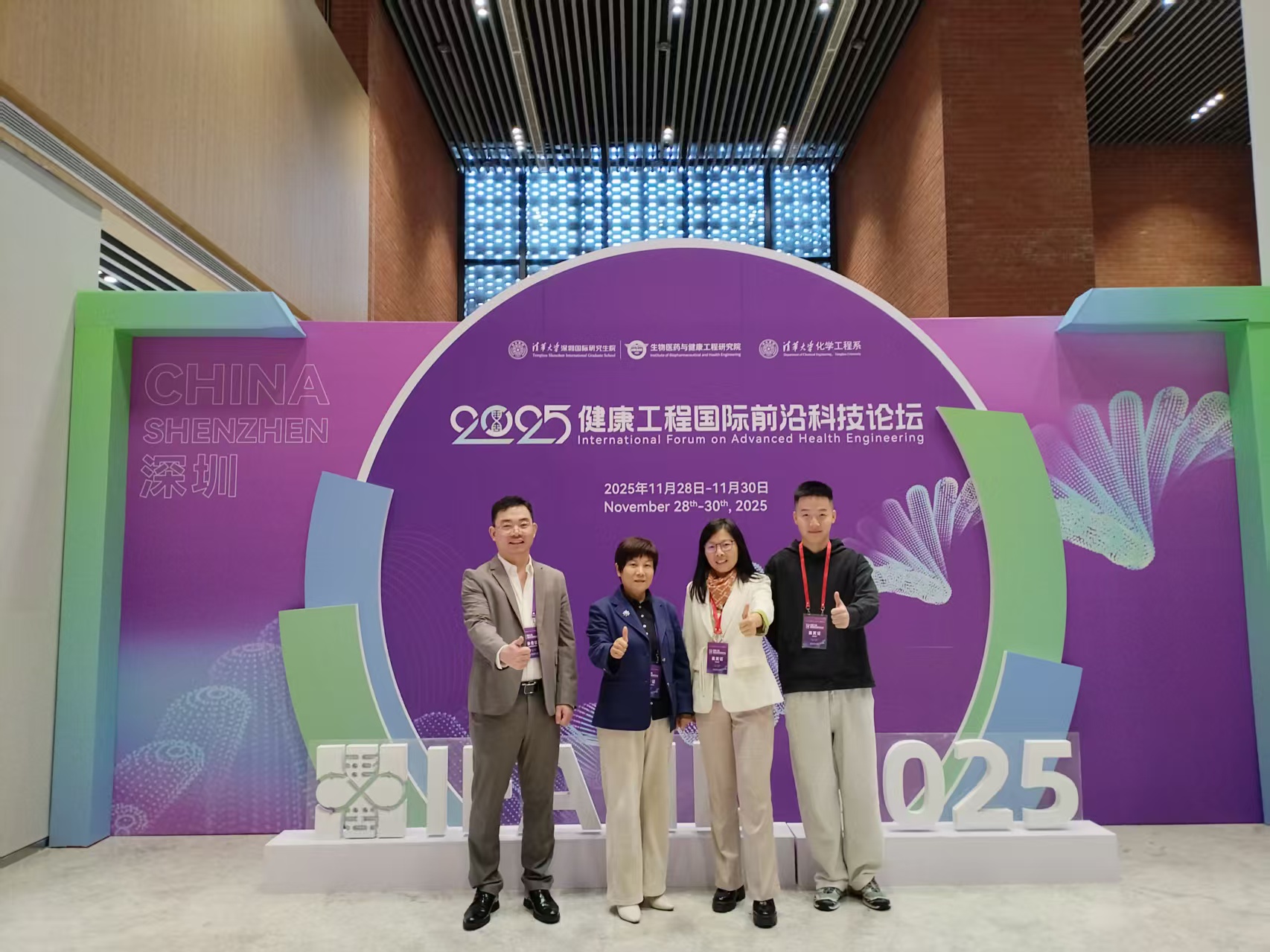 为对接生物医药与健康工程领域发展前沿,优化研究生培养与科研发展方向,11月28日至30日,我院薛正莲、刘艳两位教授应邀赴深圳,参加了由清华大学深圳国际研究生院生物医药与健康工程研究院、清华大学化学工程系主办的“2025健康工程国际前沿科技论坛(IFAHE 2025)”。本次论坛聚焦生物医药与健康工程领域的技术革新与产业融合,汇聚了国内外同行专家与企业代表,共同探讨前沿研究与行业发展趋势。