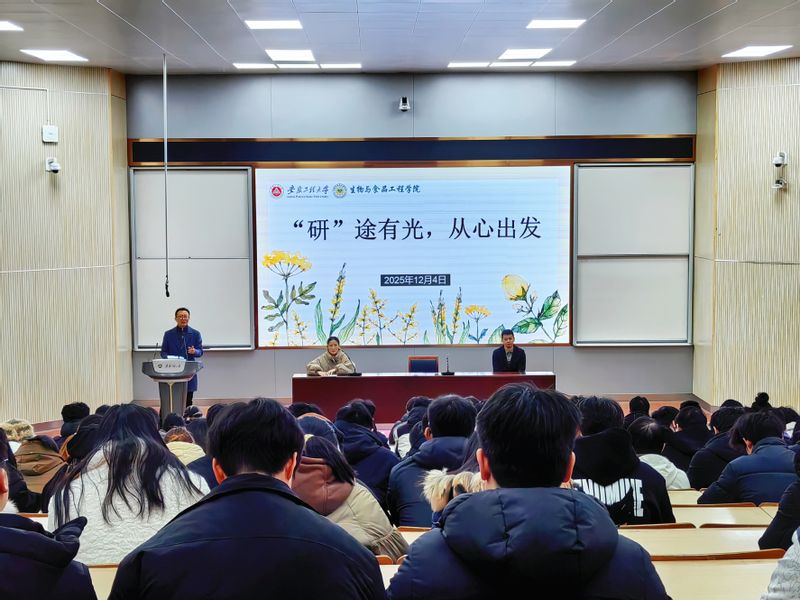 12月4日下午,生物与食品工程学院在2教报告厅开展了“研途有光,从心出发”考研慰问活动。学院党委副书记王彦青,毕业班辅导员李良渊及2026届全体考研备考生参加本次活动。活动由学院心理联络员钟莉娟主持。