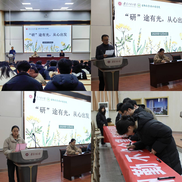 聚力考研关怀,护航学子“研”途梦想。面对考研学子在冲刺阶段的心理压力,学院特别开展“研途有光,从心出发”专项关怀行动。活动前期,低年级同学通过手写祝福便签,在学院寄语墙上汇聚成一片“温暖海洋”。慰问会上,王彦青副书记鼓励全体2026届考研学子保持坚韧、注重健康、自信迎考。辅导员与心理部工作人员共同为备考学生发放暖心物资包,并组织大家在祝福横幅上签名寄语。学院同步推送学校心理健康教育中心的专项咨询服务信息,构建“情感支持+专业援助”的双重保障。