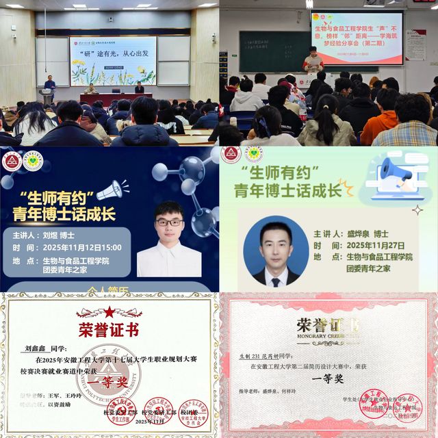 多维引领促成长。学院共举办2期“生师有约”青年博士话成长活动,邀请盛烨泉和刘煜两位青年博士结合自身求学与科研经历,与学生面对面交流学业规划与职业发展。同时,举办3场“生声不息,榜样‘邻’距离”经验分享会,邀请国家奖学金获得者、竞赛达人等优秀学生代表深入班级,围绕课程学习、竞赛准备、时间管理等主题开展朋辈交流,推动榜样引领融入日常学习生活。此外,学院积极指导学生参与学校简历设计大赛和职业规划职业规划大赛等职业能力活动,开展考研暖心慰问活动,在赛事锻炼与人文关怀中助力学生全面成长。