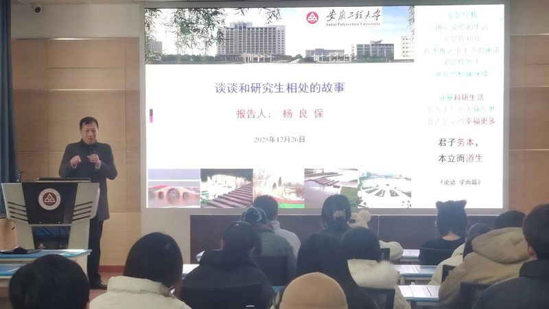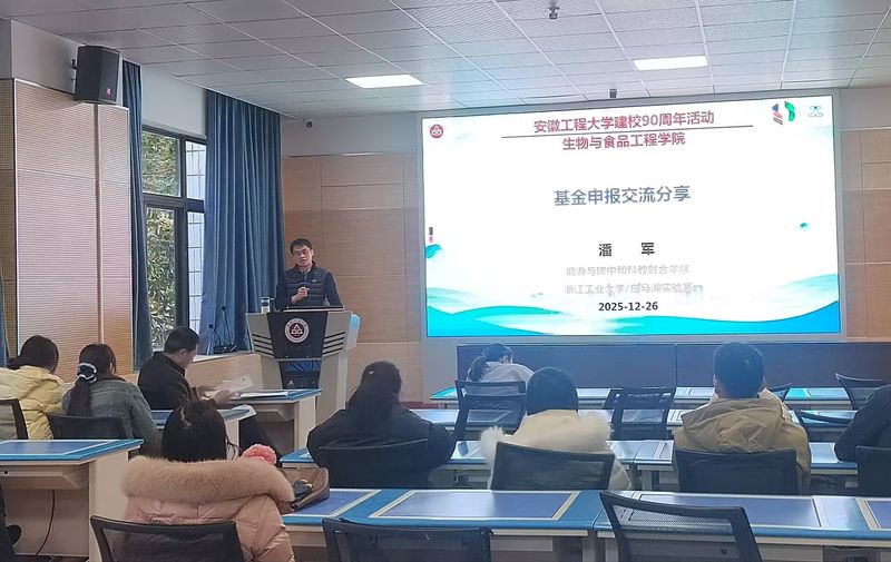 12月26日下午2:30,生物与食品工程学院学术交流报告会在虚拟仿真中心(老图书馆2 楼)成功举办。本次报告会特别邀请到中国科学院合肥物质科学研究院研究员杨良保、浙江工业大学教授潘军两位杰出校友返校,分别以 “谈谈和研究生相处的故事”“基金申报交流分享” 为主题,为学院师生带来了一场兼具深度与温度的学术盛宴。学院副院长刘艳主持报告会,部分教师及研究生代表到场聆听学习。