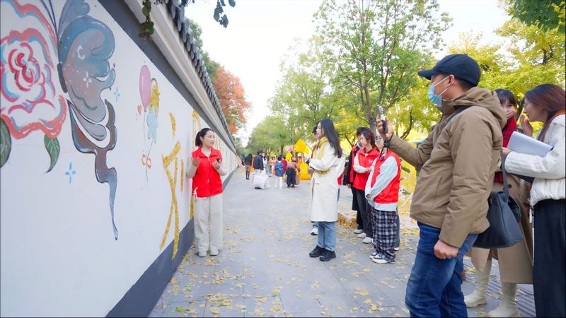 11月22日,落叶作画作品正式对外开放。团队在现场设置了文化讲解区,安排学生志愿者为市民讲解创作理念和文化内涵。许多市民在作品前驻足欣赏、拍照打卡,更有市民主动提出改进建议。
