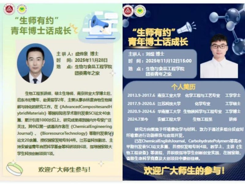 学院将第二课堂打造为深化专业认知、激发学术志趣、锤炼创新能力的关键场域。系统设计“认知-探索-创新”三级进阶式学业活动体系:入门阶段,举办新生专业介绍会、青年博士话成长等系列活动,启航学术之旅;探索阶段,组织创新创业系列沙龙、学科竞赛专题辅导,拓展学术视野;创新阶段,全力支持学生参与中国国际大学生创新大赛、“挑战杯”等高水平赛事,推动学以致用。特别注重“专业学习与实践应用”深度融合,依托食品工艺实训等实验室平台,将蛋糕烘焙、啤酒酿造等专业实践活动转化为生动的学习项目,实现“学中做、做中学”,极大提升了学习的趣味性与成就感。