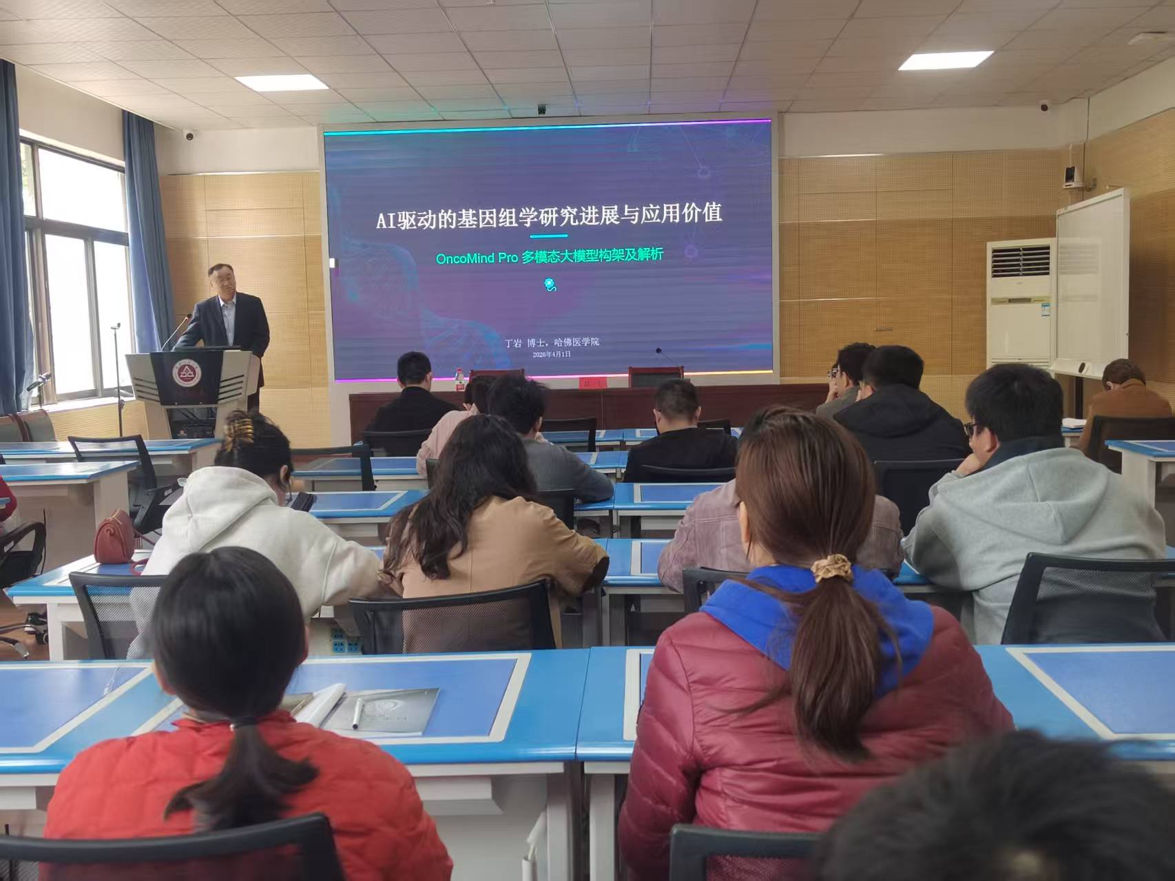报告中,丁岩教授围绕AI驱动的基因组学核心主题,结合当前前沿研究成果,系统介绍了该领域的技术突破。他重点讲解了AI技术在基因序列分析、致病位点识别中的创新应用,指出AI凭借高效的数据处理能力,突破了传统基因组分析在速度和精度上的局限,可精准解读海量基因组数据,为探索基因功能、破解疾病遗传密码提供了全新路径。