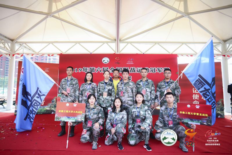 2019年年初,由我校体育学院体验产业学院与教务处、学生处、武装部联合在我校退役军人大学生、体验产业管理创新班、体育表演专业中选拔了10名运动员组成校代表队,经过艰苦训练后,在参加了广州站和上海站的分站资格赛(荣获三人武装越野赛冠军和亚军),取得了总决赛参赛资格,我校又派出安徽工程大学雪龙战队(余龙、何申祥、招炳华、李银龙、解灵康)和火凤战队(张晓菲、任丽群、俞芙蓉、侯冰洁、黄磊)征战总决赛。