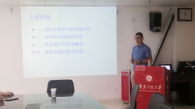 10月12日下午,我院特聘教授、校外兼职硕导、南京医科大学流行病学博士贺连平在体育学院会议室为学院教师和全体研究生开展了一次题为《体育统计学:从基本概念到假设检验的核心思想》的学术讲座。体育学院院长胡好、保卫处文才新处长出席了本次讲座,讲座由体育学院院长胡好主持,全体青年教师和研究生聆听了报告。