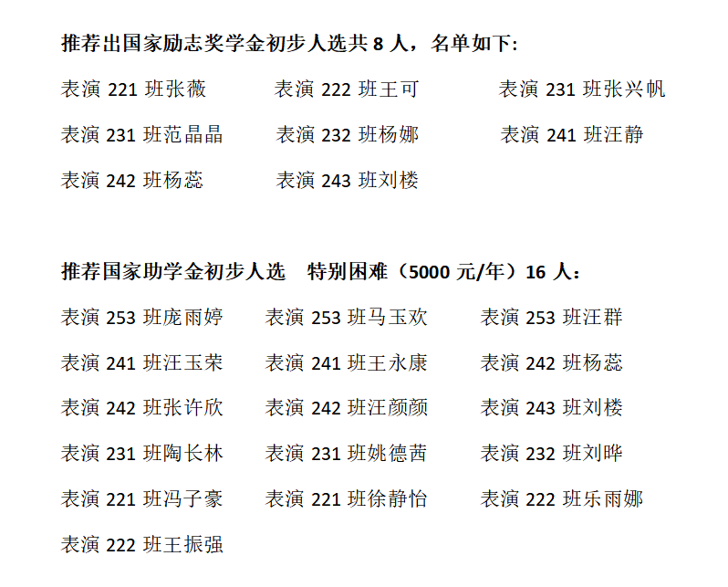根据《安徽工程大学全日制本科生国家奖助学金评选办法》和《关于做好2025年国家奖助学金评审与推荐工作的通知》的规定和要求,经学生本人申请、班级评议、辅导员审核、学院本科生奖学金评审小组审议,学院党政联席会议通过,现将我院2025年国家励志奖学金、国家助学金推荐对象情况公示如下。