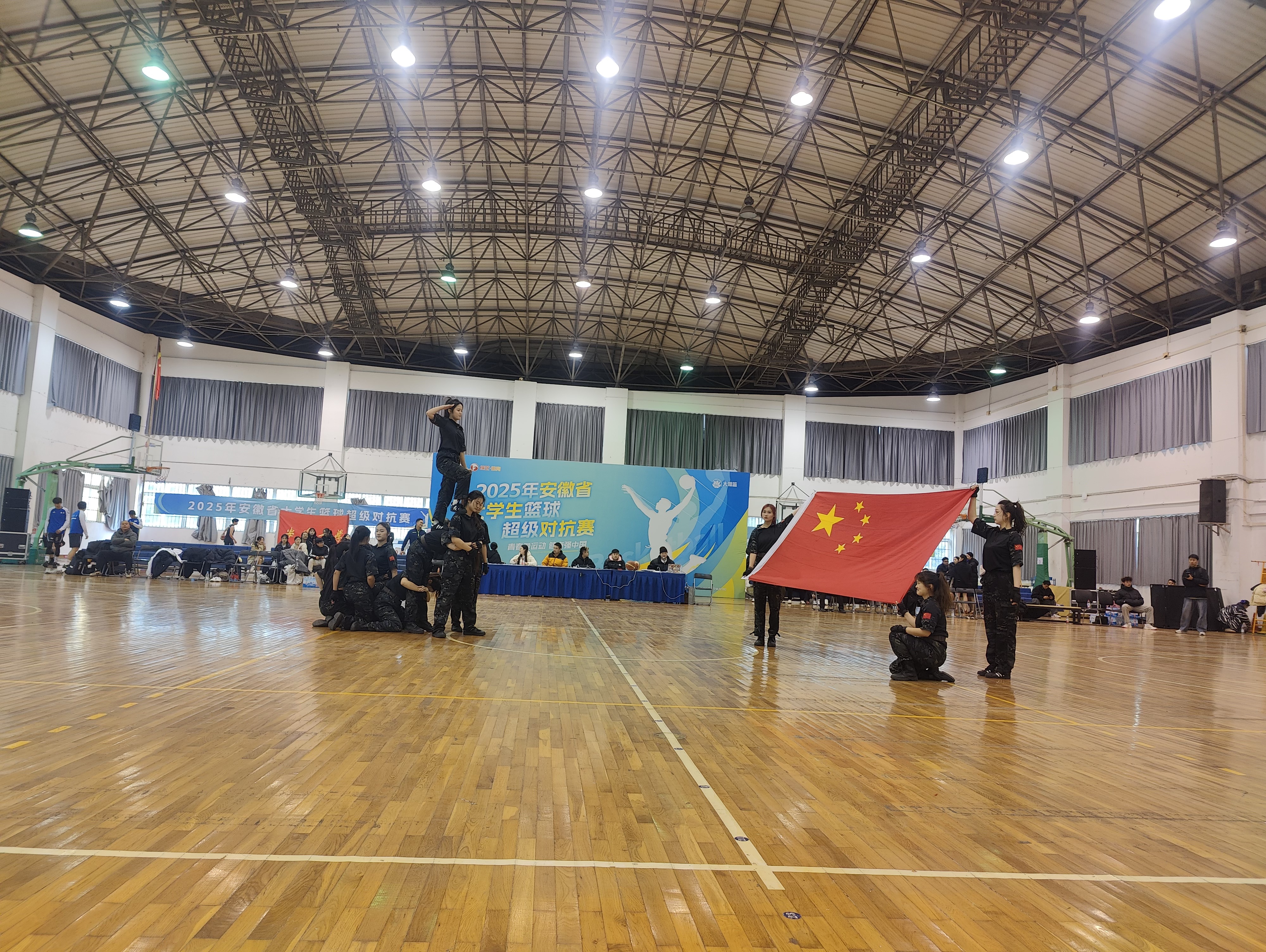 “活力绽放,燃动全场”体院学子闪耀安徽省大学生篮球超级对抗赛(安工程站)开幕式