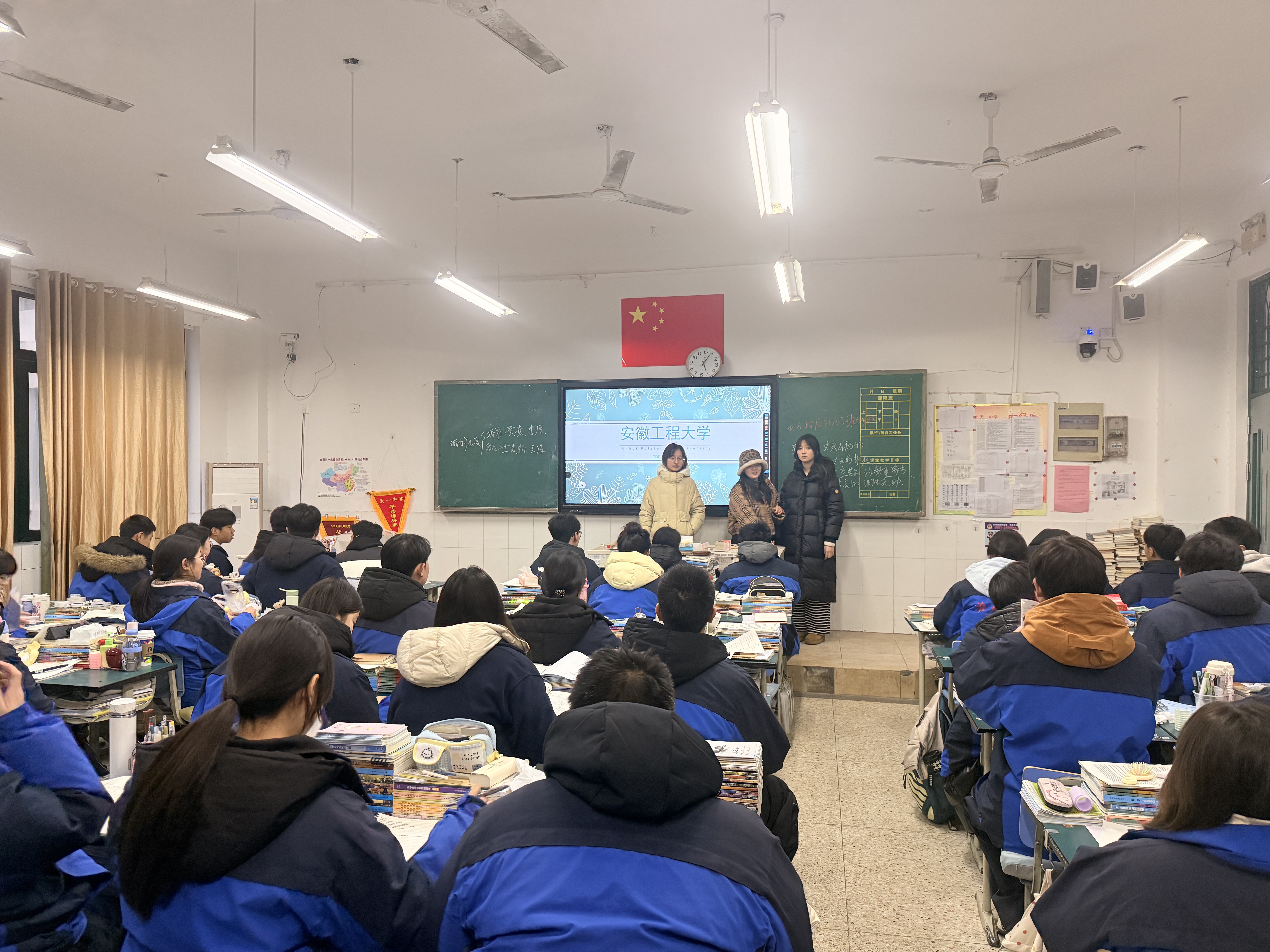 为更好的帮助学弟学妹更直观了解大学生活、明确未来目标,为其分享成长经验,2026年1月26日由体育学院表演251班张静怡、表演253班吴珈慧、计算机与信息工程学院软件工程253班吕恩彩组成宣讲团赴淮北市天一中学成功举办了招生宣讲活动。