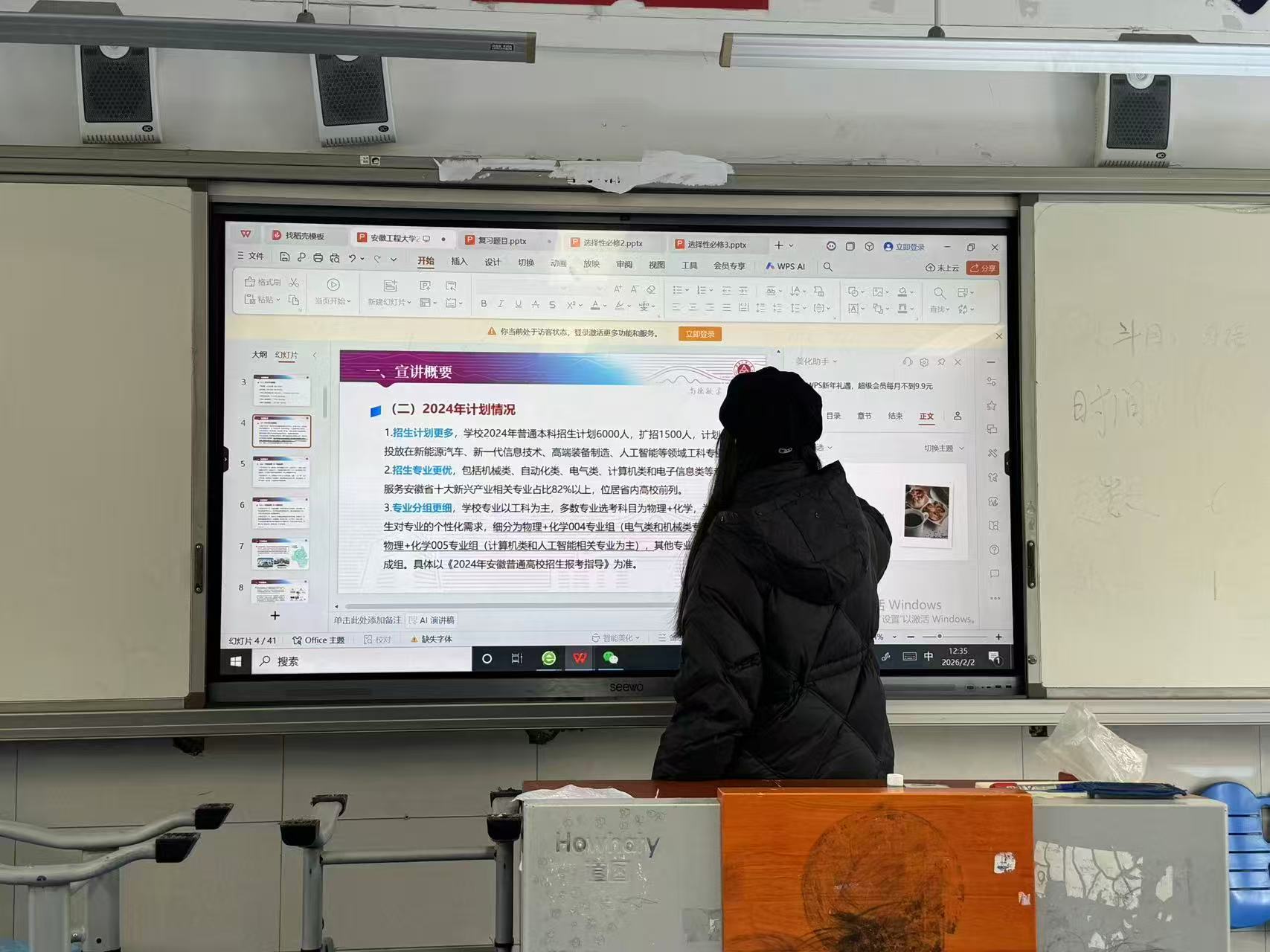 来到合肥第三中学,宣讲团现场播放的“学长学姐说”访谈视频,涵盖了从艺考备战到考研就业的全链条经验,引发了在场学子的热烈共鸣。