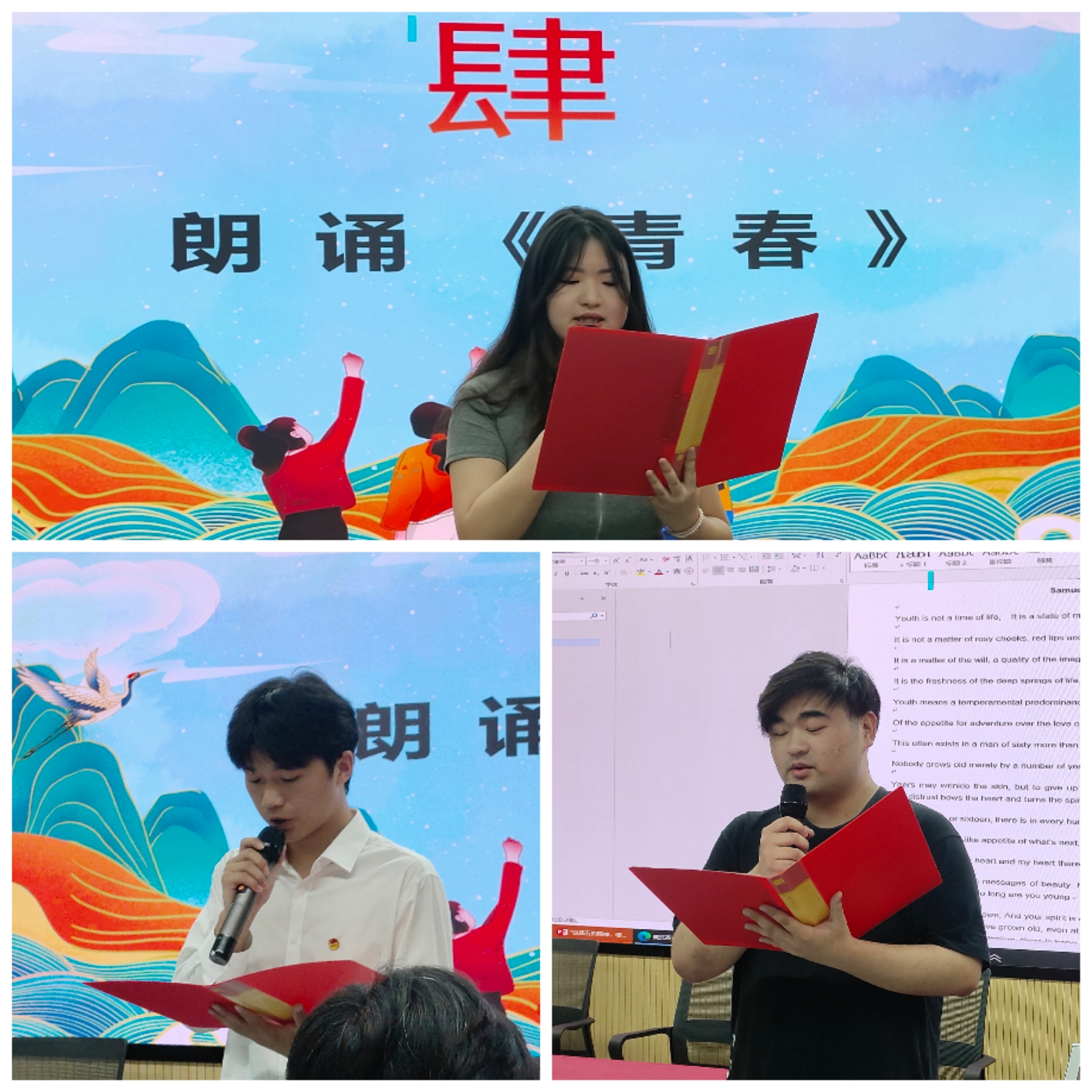 激扬青春斗志。“如果青春有颜色,你认为是什么颜色”,张君用提问引发同学们积极思考。“青春是红色的,因为炽热”,“青春是金色的,因为珍贵”,“青春是白色的,因为充满无限可能”,同学们的精彩发言赢得阵阵掌声。周斐然朗诵李大钊的《青春》,带领大家感受“以青春之我创建青春之国家,青春之宇宙”豪迈担当;王超朗诵汪国真的《青春》,希望同学们珍惜“诗一样的青春”;王焱朗诵塞缪尔·厄尔曼的《青春》,诠释“青春”在时间之外的含义。