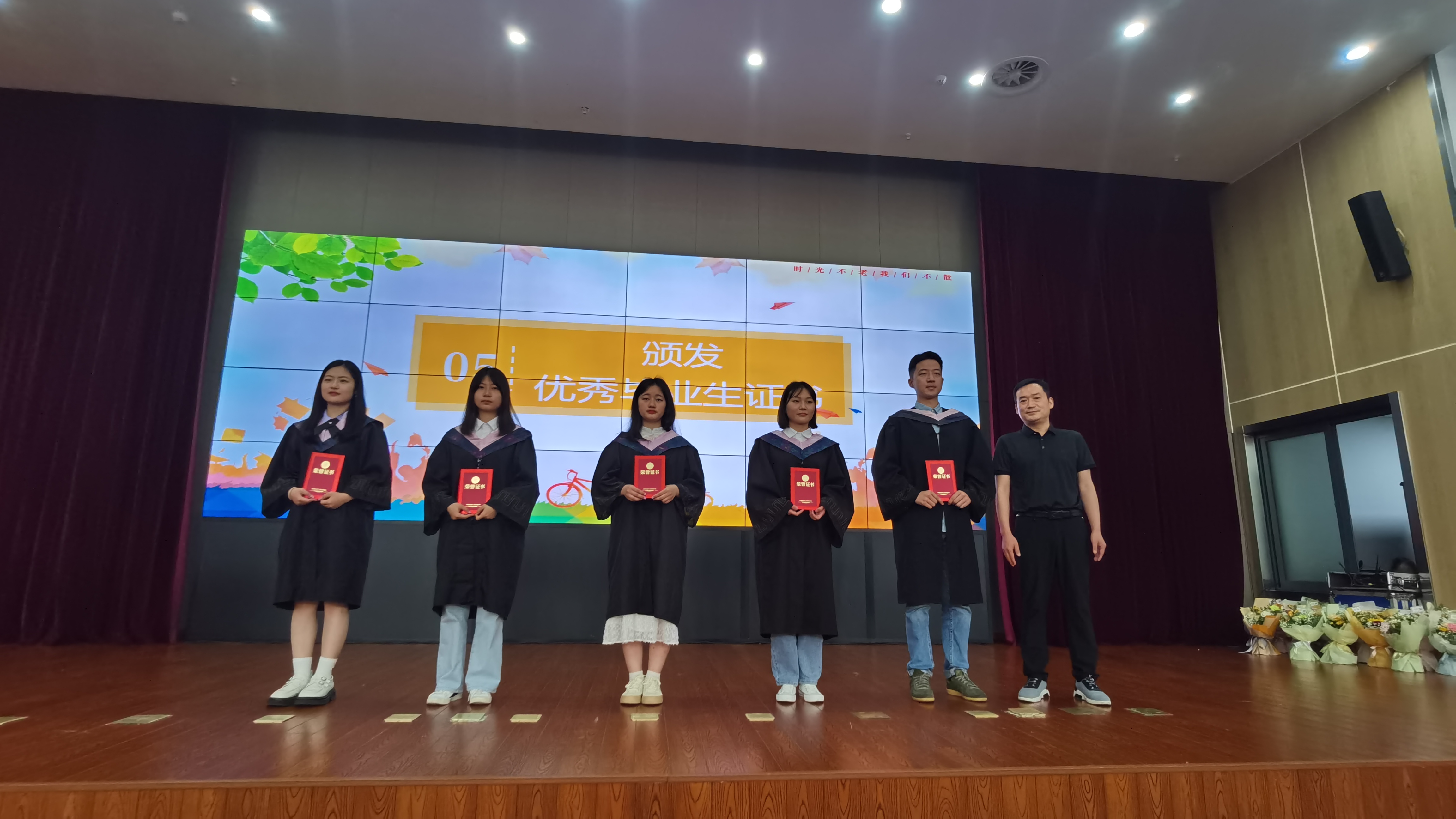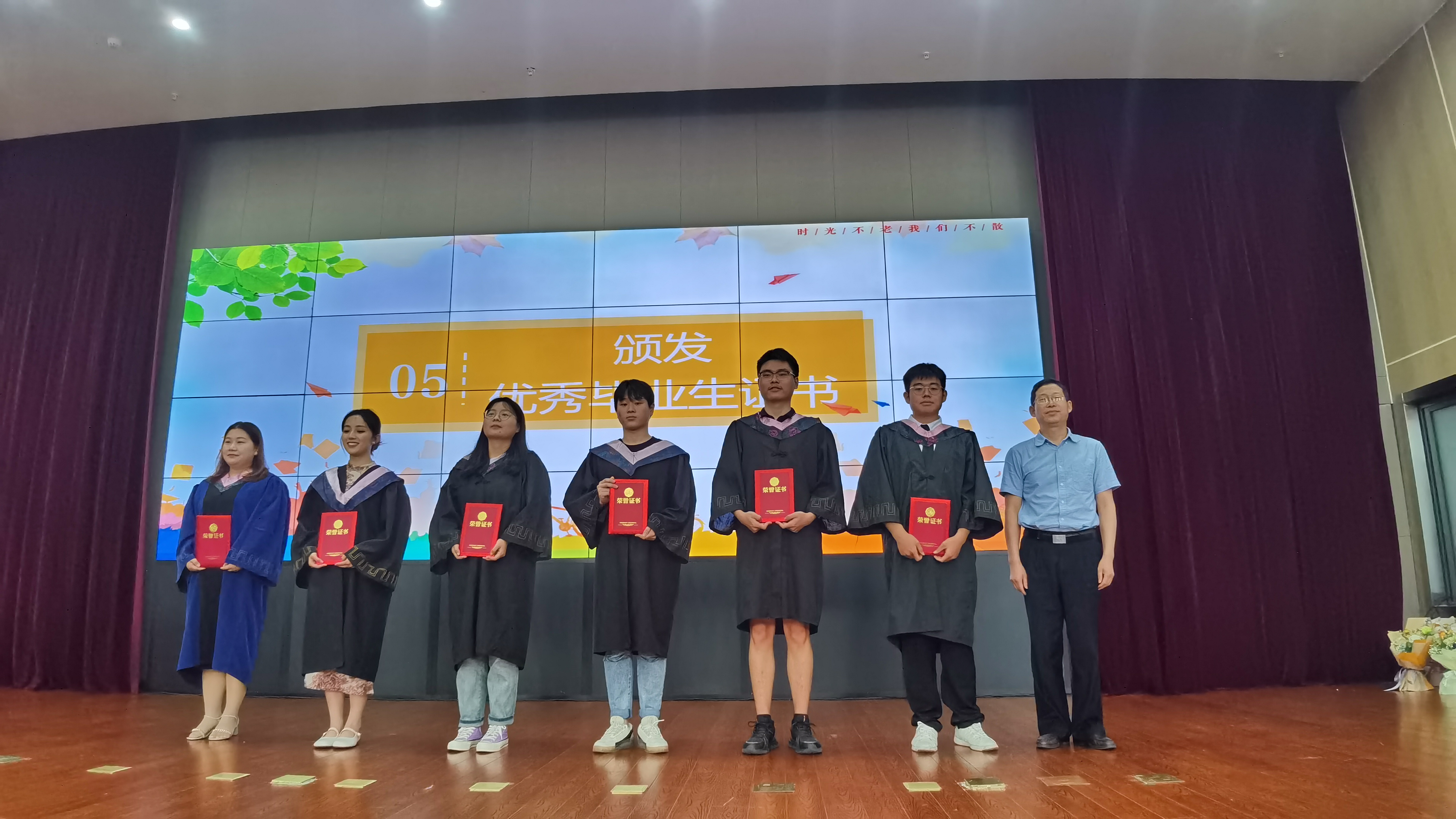 院党委副书记李校林宣读外国语学院获得2023届安徽省普通高等学校优秀毕业生、安徽工程大学优秀毕业生荣誉称号的学生名单。校党委常委、纪委书记程双四为安徽省优秀毕业生颁发荣誉证书,院党委书记董金权为校优秀毕业生颁发荣誉证书,勉励获奖毕业生“不负韶华,不负时代,不负人民,在青春的赛道上奋力奔跑,努力成长为堪当民族复兴重任的时代新人。”