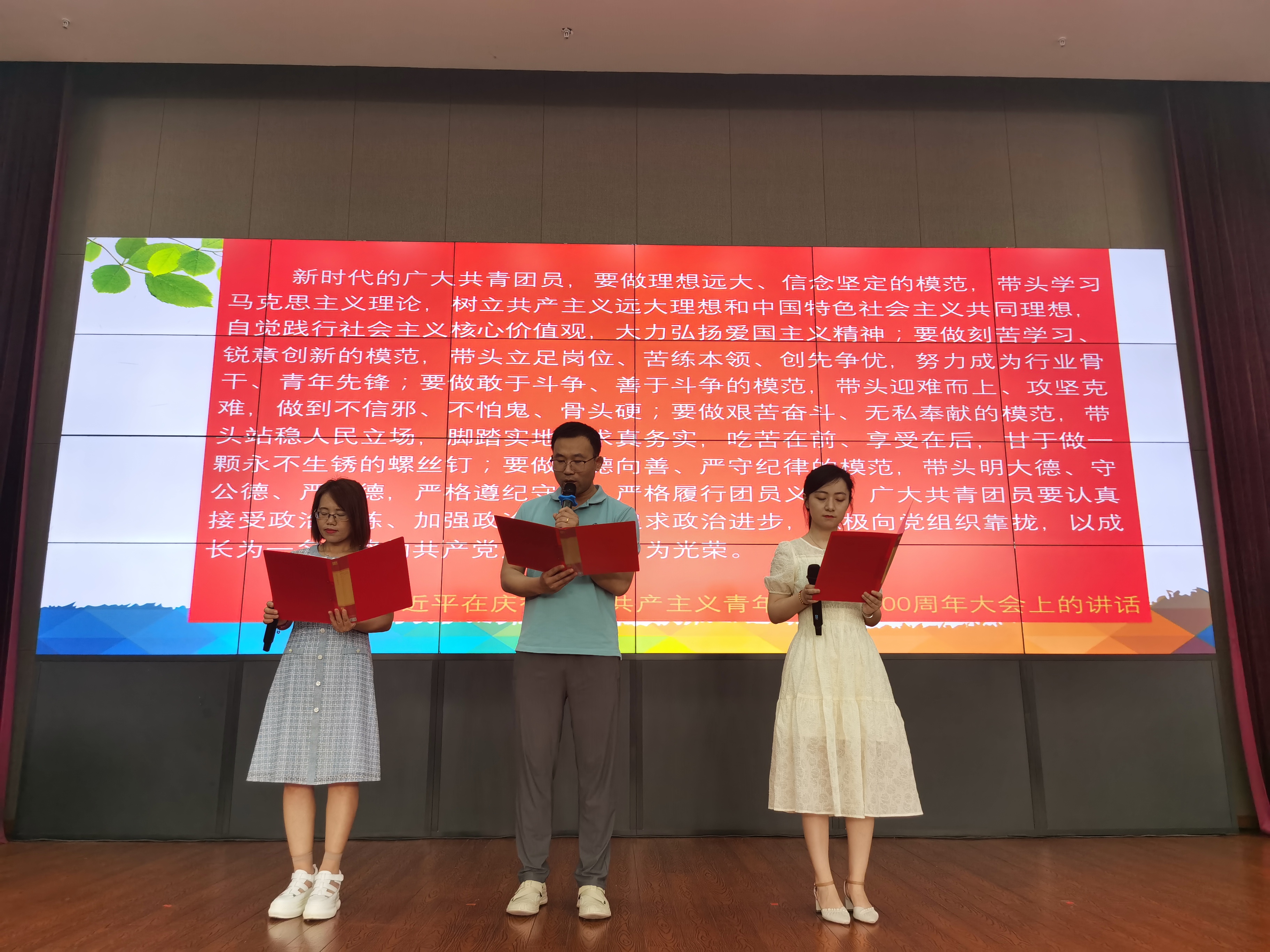 教师代表刘云云、李晓光、韩利敏带领全体毕业生重温习近平总书记关于青年工作的重要论述,号召广大青年自觉把个人命运与国家发展紧密结合,在建设社会主义现代化国家的火热实践中绽放青春之花。学生代表周斐然、王超、王焱用中英文朗诵诗歌《青春》,将李大钊、汪国真、塞缪尔·厄尔曼、雨果对青春的理解一一呈现,向毕业生发出“用青春奋斗书写人生华章”的邀约。