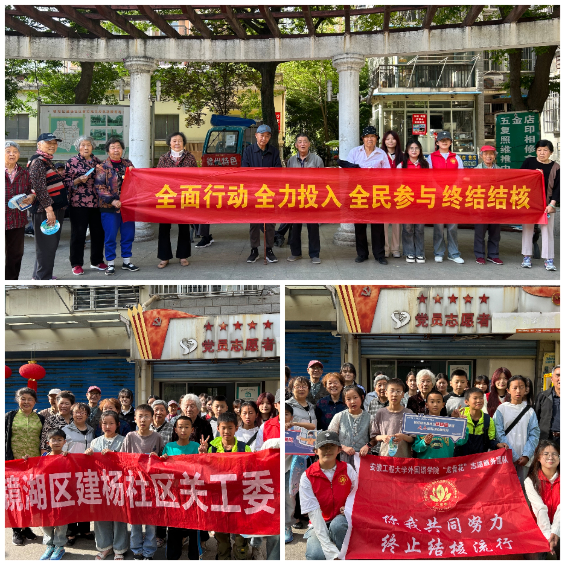 2025年4月26日下午,在“五一”国际劳动节即将到来之际,安徽工程大学外国语学院“龙骨花”志愿团队携手芜湖市建杨社区,以“结核防治进社区,健康知识惠万家”为主题,开展了一场结核病防治科普宣传活动。针对节日期间社区人员流动频繁、疾病传播风险增加的特点,团队通过多元化的宣教形式,助力提升居民健康防护意识,为社区筑牢节日健康防线。