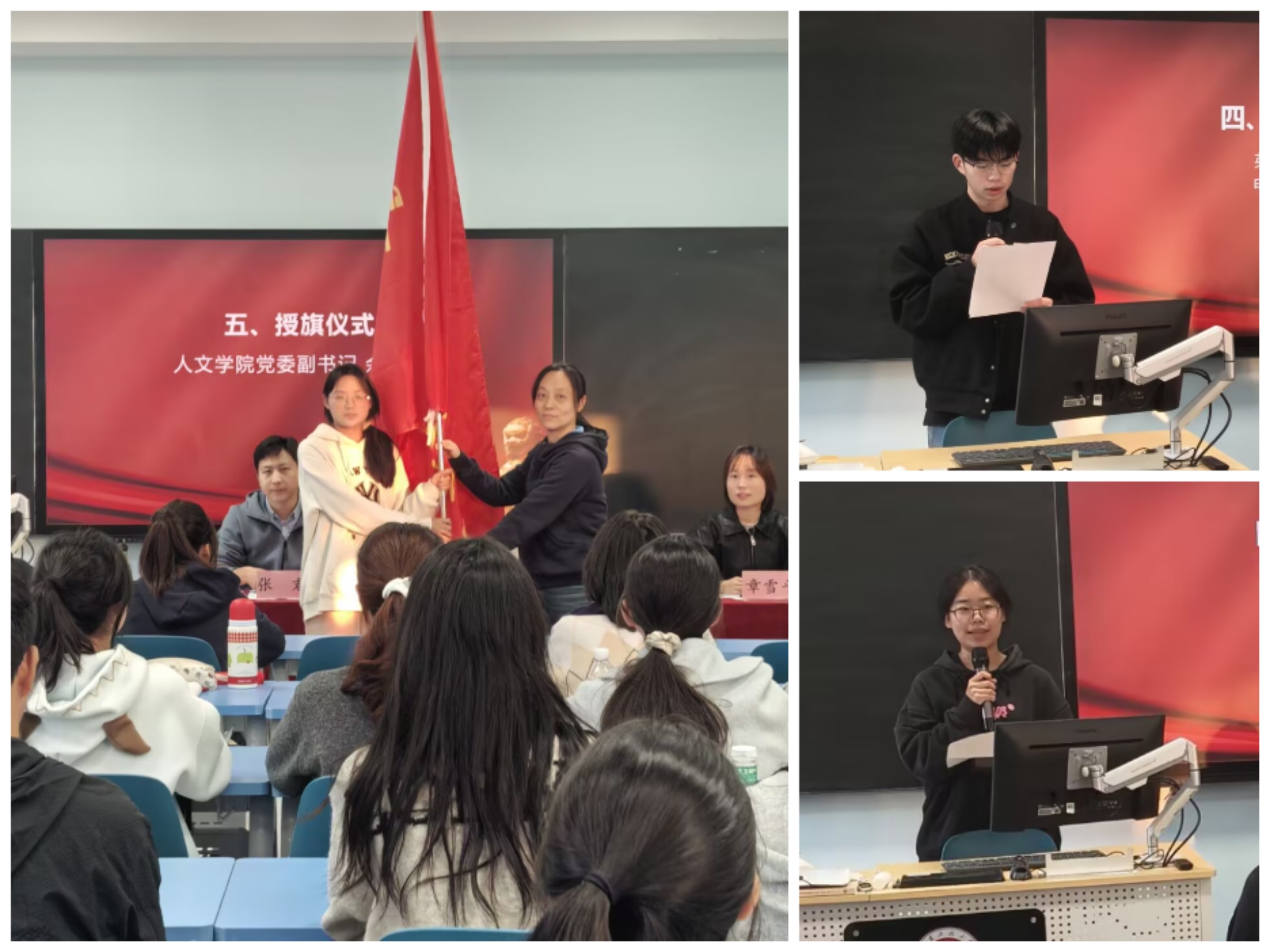仪式在庄严的国歌声中拉开帷幕。张君介绍了本期培训班的教学安排,章雪平宣读了培训纪律要求。学员代表英语241班梁宇轩、电商法251班何志荟先后发言,表达了珍惜学习机会、努力锤炼本领的坚定决心。随后,余本祺为培训班团支书李琳授旗,象征着青马精神的传承与青年担当的交接。