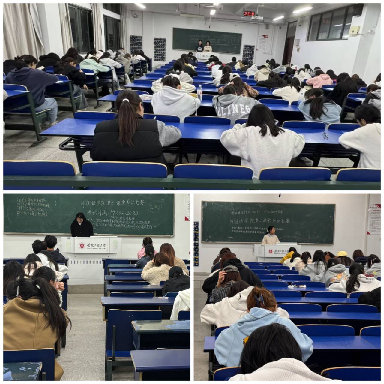 2025年11月10日19:00,外国语学院第二课堂知识竞赛在六号教学楼顺利举行。本次竞赛在开学以来已组织两次第二课堂知识培训的基础上开展,共吸引2024级、2025级本科生175人参加。比赛分为专业组与非专业组两个类别。