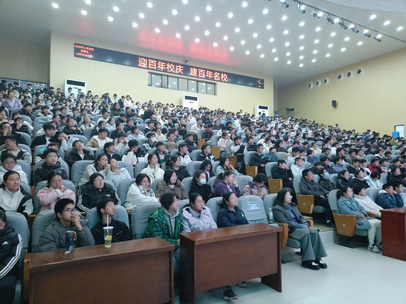 本次活动的主讲嘉宾为人工智能学院的徐锋博士,外国语学院的项菁老师全程参与了讲座互动和课程思政研讨。蚌埠二中高一年级全体学生及班主任共计1300余人现场聆听了讲座。