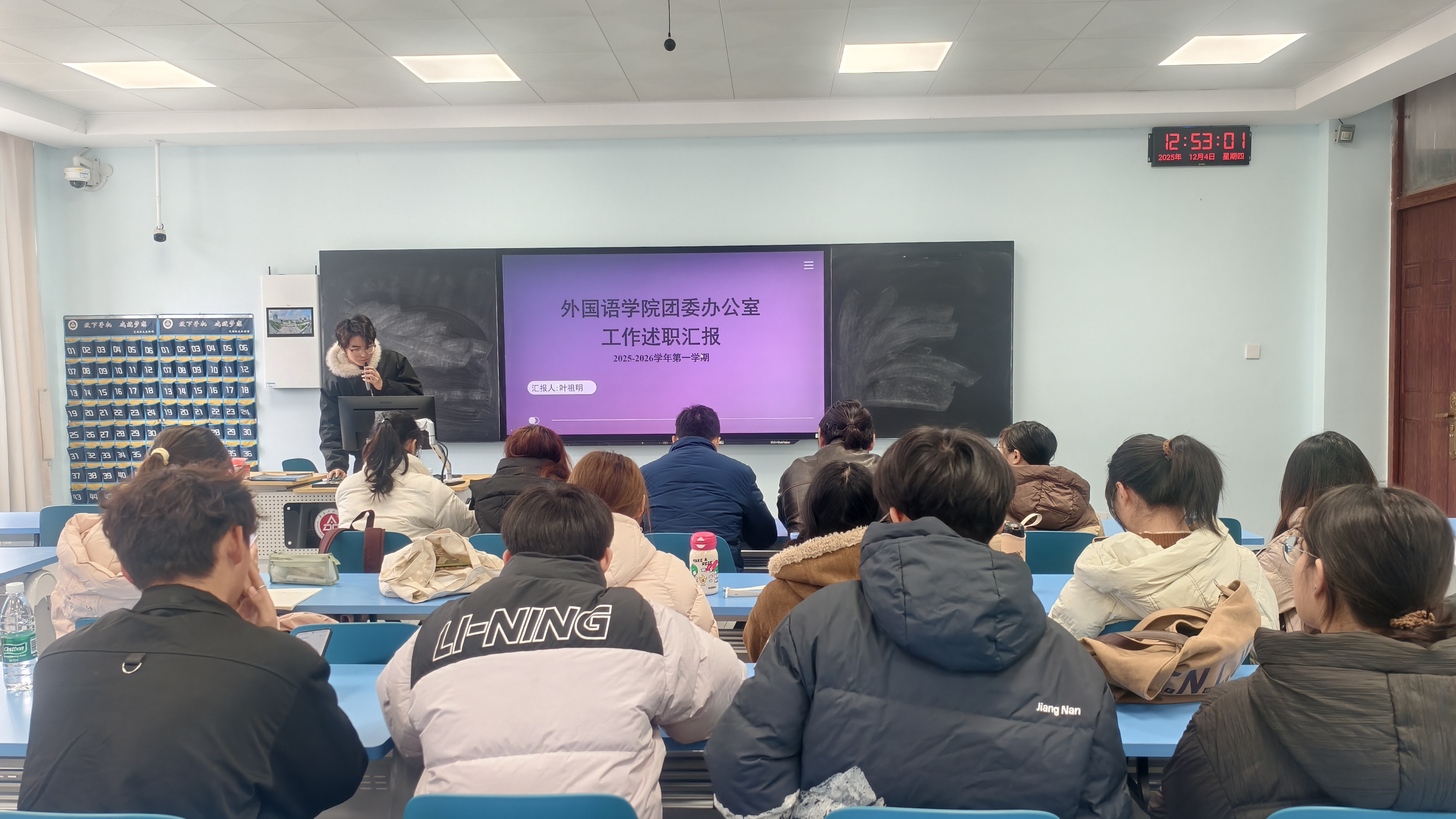 12月4日,外国语学院在6教301组织召开2025-2026学年第一学期学生组织工作考核暨学生会及社团工作专题会议。学院团委书记张君,团委副书记、院学生会主席团成员参加会议。