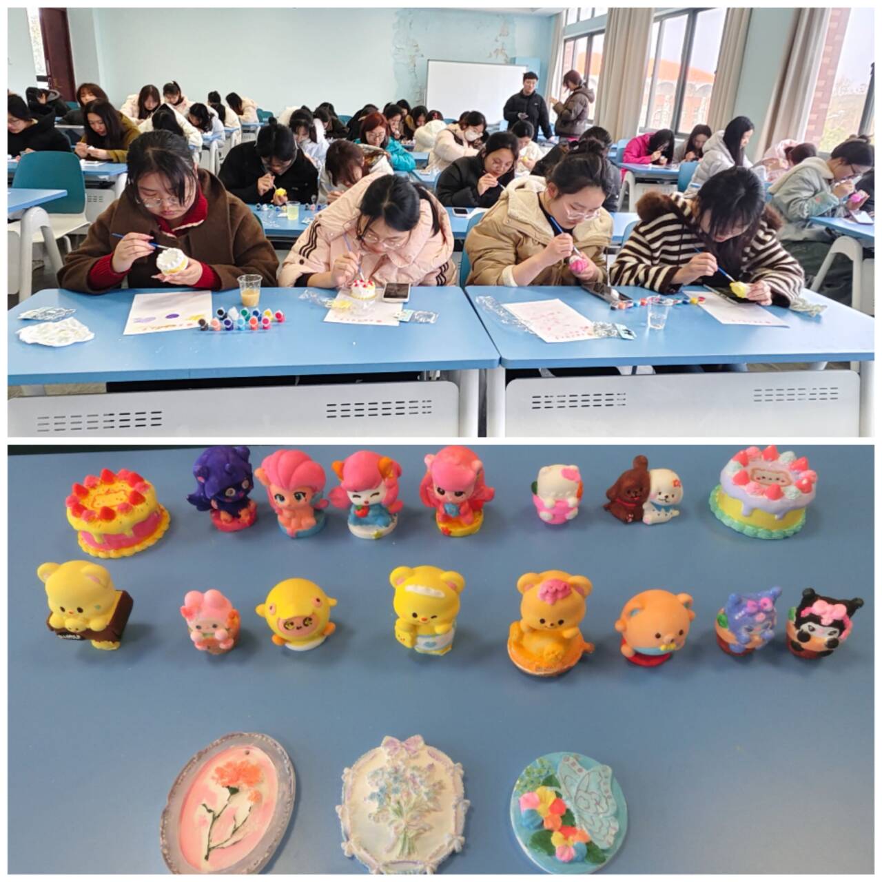 光影留念,定格“她”风采。活动尾声,同学们手捧亲手绘制的作品,齐聚镜头前,眉眼间满是笑意与成就感,一张张灿烂的笑脸与色彩斑斓的石膏娃娃同框,被相机瞬间定格。这些承载着心意与祝福的作品,将走进宿舍、点缀书桌,成为这个春天最温柔、最有意义的注脚。