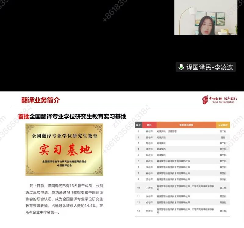 3月9日,我院与译国译民公司合作举办的翻译硕士研究生专业实习开班仪式在云端举行。外国语学院副院长韩利敏教授、硕士点负责人张凤梅教授、译国译民公司高校事业部总监李凌波、实习运营Luna以及全体2024级研究生及导师共同参加了此次活动。