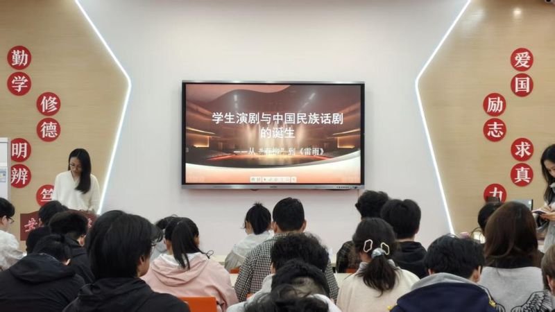 4月22日下午,安徽工程大学“艺韵春光”第二课堂在一站式学生社区1楼第二课堂运营中心迎来一场别开生面的戏剧文化讲座。本次活动由校团委主办,外国语学院文学文化科研团队承办,团队教师梁真博士以“从春柳到雷雨:学生演剧与中国民族话剧的诞生”为题,将个人戏剧史研究成果转化为生动的育人课堂,吸引了百余名学子参与。