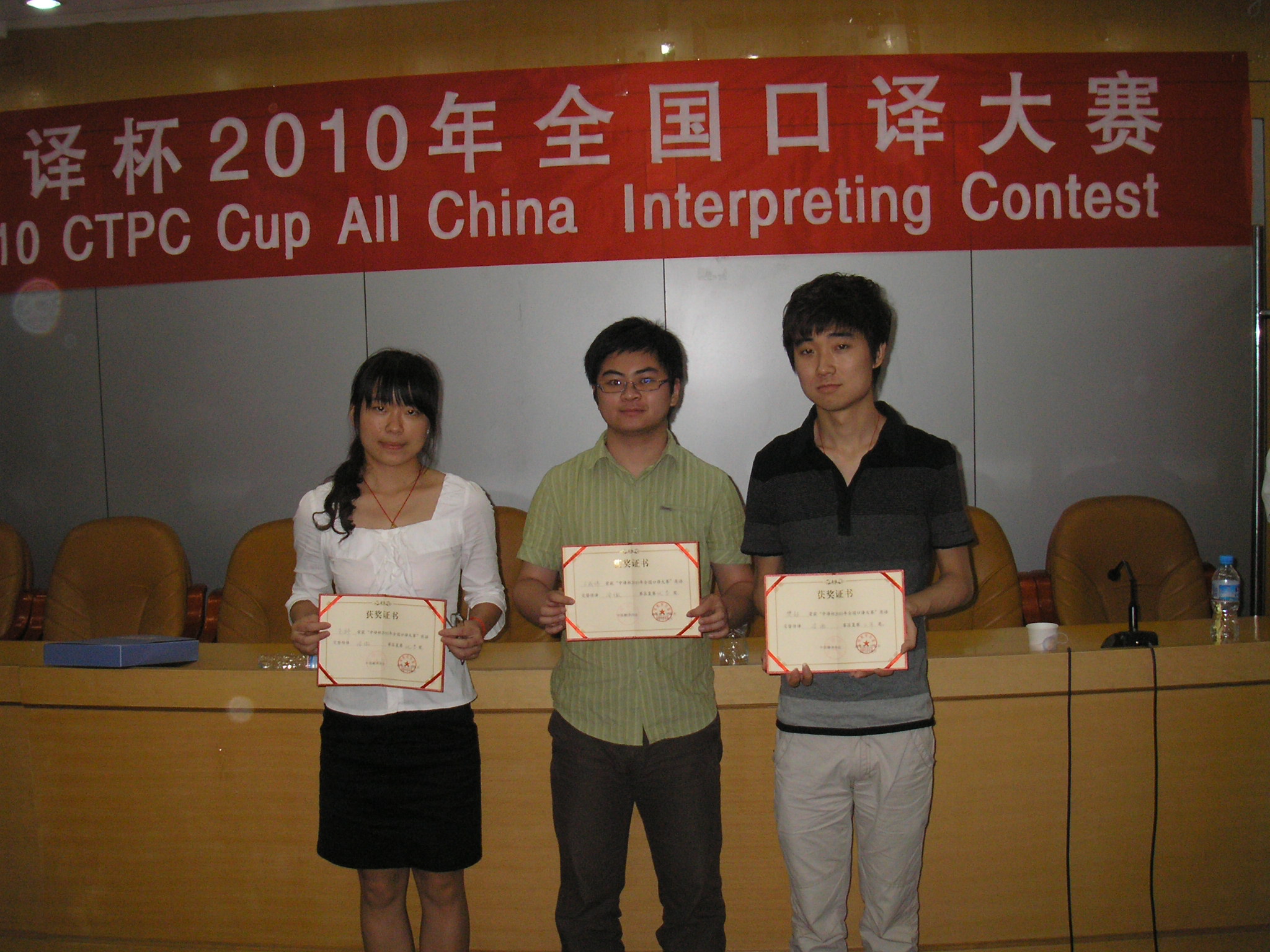 本次大赛由中国翻译协会、高等教育出版社联合主办,安徽赛区由合肥工业大学承办。比赛分三轮进行,实行淘汰制。在激烈的角逐中,我校三位选手顺利闯过第一关,进入二轮、三轮比赛。在强手如林的参赛选手中,樊超同学脱颖而出,最终获得本次大赛三等奖,王成伟、王婷同学获得优胜奖。