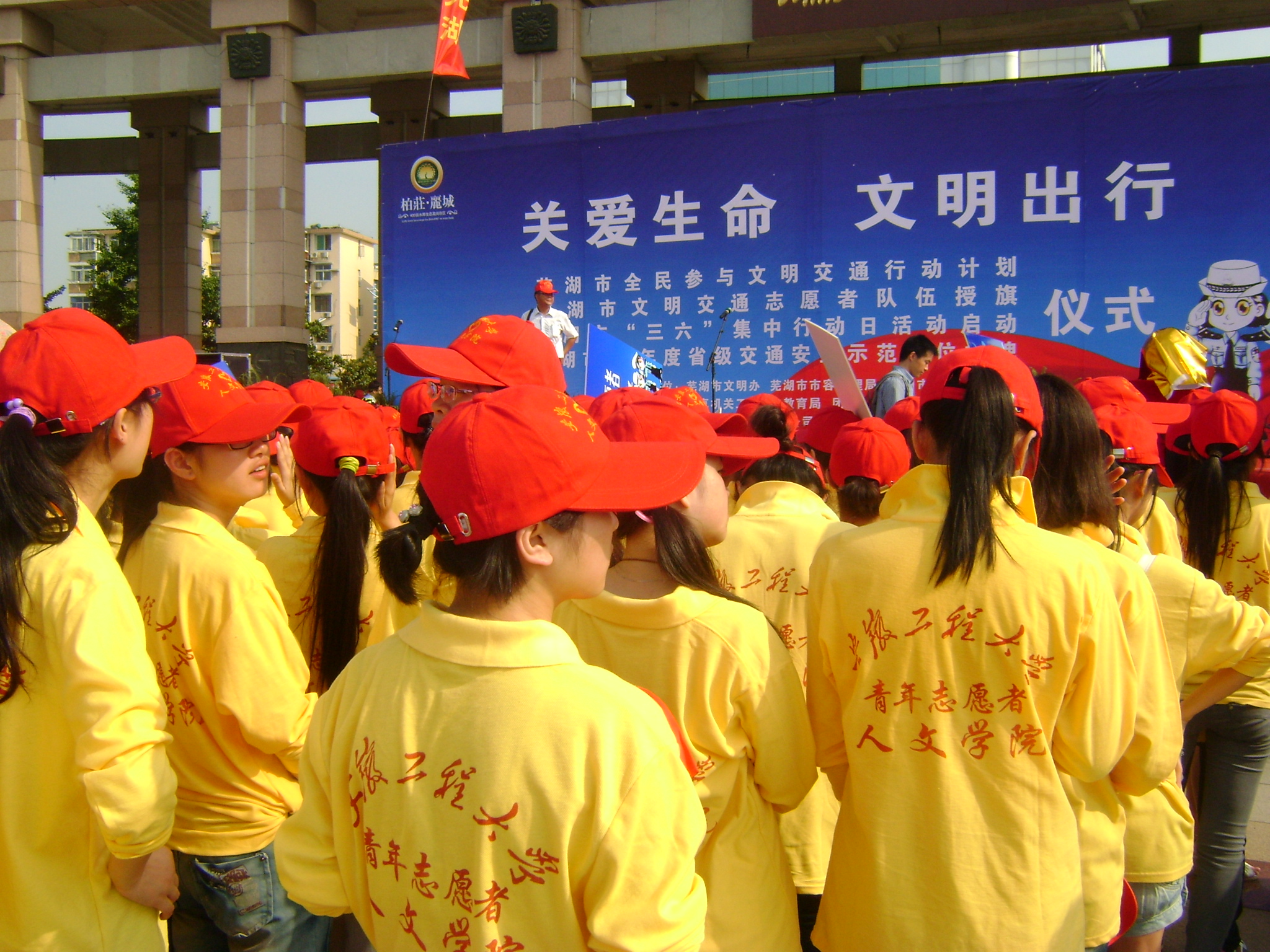 作为志愿者,作为芜湖公民的一分子,人文学院青年志愿者为能受邀参加这次启动仪式而感到非常荣幸。随着芜湖经济的发展,人、车、路的矛盾日益突出,文明出行,建设和谐芜湖成为每个市民义不容辞的责任。人文学院青年志愿者表示她们将在“文明交通行动”中发挥积极作用。从自我做起,遵守交通规则,不断提高交通出行的法治意识、安全意识、文明意识。与此同时,广泛宣传文明交通的知识,动员广大市民为创建安全芜湖、文明芜湖贡献力量。