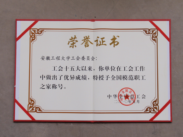 创建“模范职工之家”是中华全国总工会为落实党中央书记处提出的“工会要成为职工之家”的要求而开展的创建活动,共分为四个级别,“全国模范之家”为最高级别的荣誉称号。评选指标分为四大块:职工教育,寓教于乐;民主管理,民主监督;为职工说话办事,做好维护工作;工会组织自身建设。此前近十几年来我省仅有两所高校获此殊荣,今年表彰的“全国模范职工之家”我省高校仅我校一所。