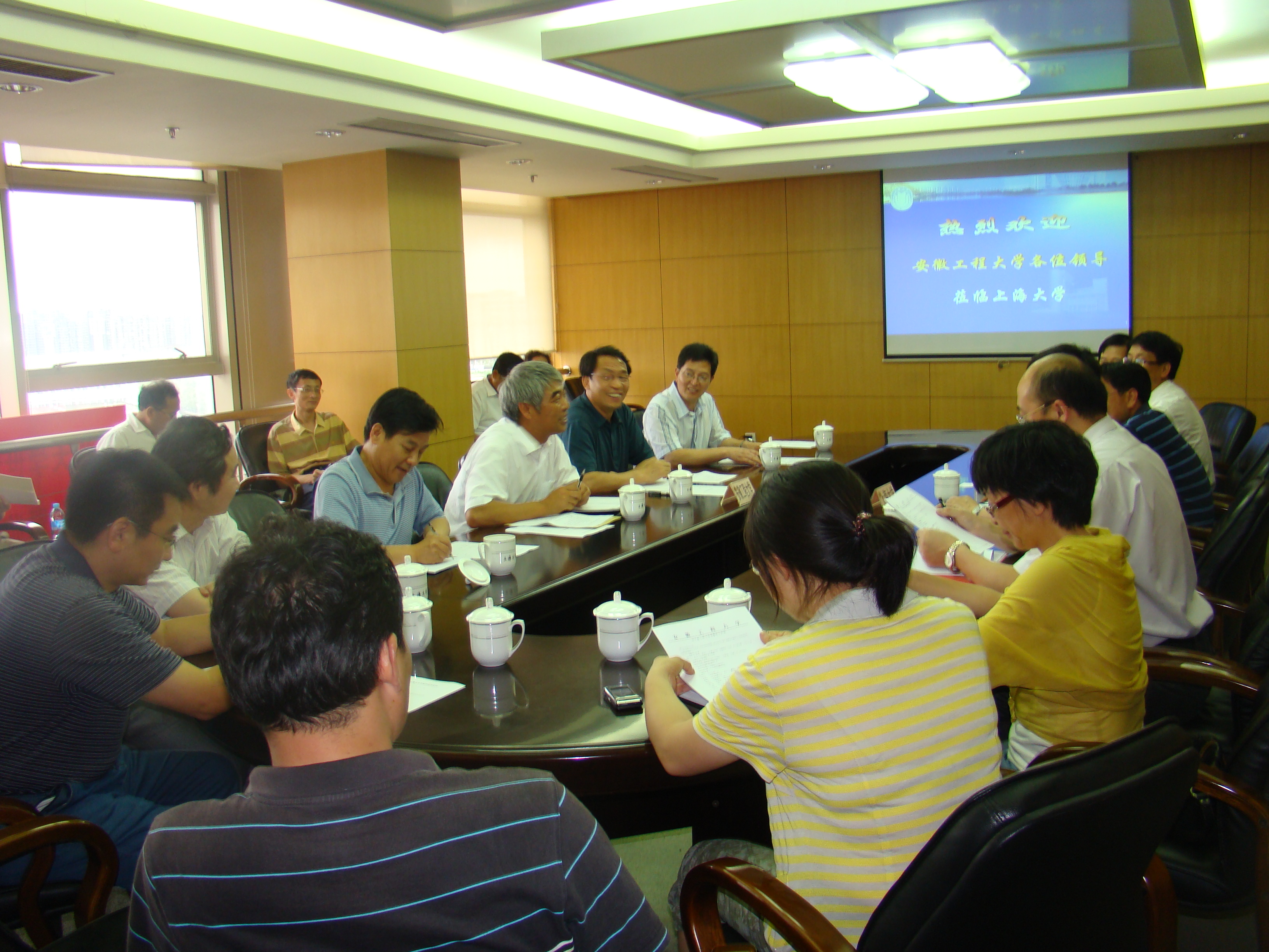 在座谈会上,陈其工首先向上海大学各位领导冒着炎炎夏日接待我们表示感谢,然后介绍了我校的基本情况和此行的调研内容,并着重指出,两校同为地方工科院校,上海大学近年来的快速发展肯定会为安徽工程大学这所刚刚更名的院校提供很多宝贵的经验。于信汇在讲话中首先向大家介绍了上海大学更名后的发展历程,在谈到上海大学近年来的快速发展时,他总结了四条成功经验:一是钱伟长校长这面旗帜在学校发展中起得决定性作用;二是学校在发展中不断设立新目标,自我施加压力,围绕教育教学、人才培养、内部管理体制等不断进行改革;三是将学校的发展努力与上海地方经济建设需要,甚至和国家的需要相结合;四是学校发展要更多关注师资队伍建设,加大干部培养力度。随后,与会人员就学校党建、干部人事、“十二五”规划编制和学校国际化问题等内容进行了深入交流。 (党委组织部)