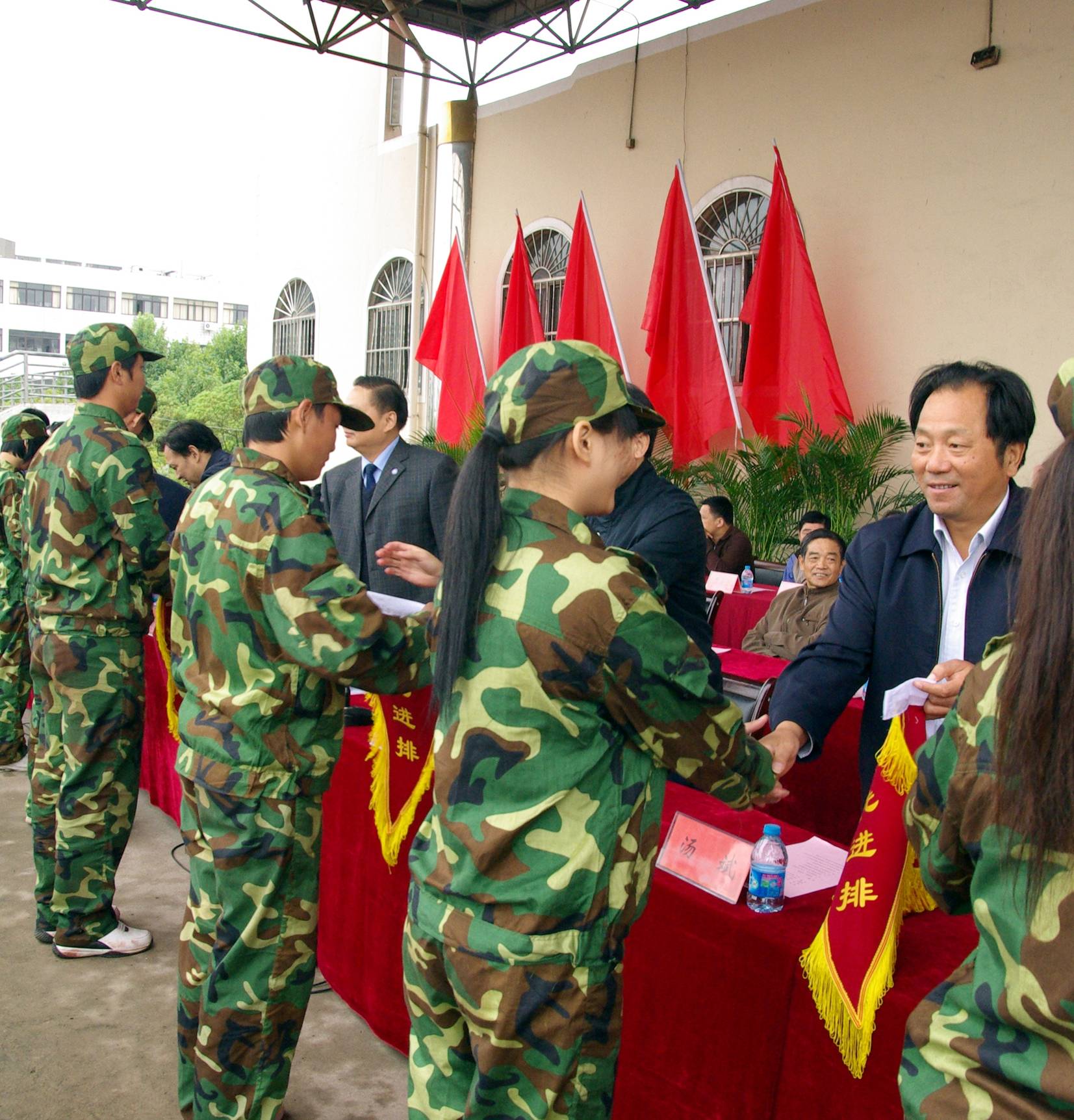 校党委副书记、副校长方友实宣读了军训工作先进集体和先进个人的名单,在前排的各位领导为获奖者颁了奖。