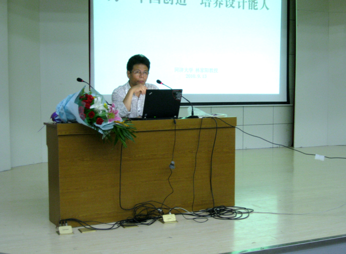 在与艺术学院的教师、研究生进行学术交流后,晚上19时,林教授在我校学术报告厅作了一场题为“为‘中国创造’培养设计能人”的学术报告。艺术学院党委书记许晓菁、院长黄凯、副院长陆峰及我校和兄弟院校的师生300余人参加了此次报告会。