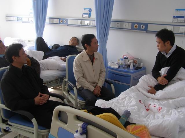 11月8日上午,李震副校长一行带着爱心款和慰问品来到医院,在丁勇的床前详细询问了丁勇的身体状况和治疗状况,鼓励他乐观向上,安心治疗,并祝愿他能早日康复,重返校园。陈其峰副院长代表机电学院向丁勇家长移交了募捐的爱心款,并叮嘱家长珍惜每一份爱心,用得其所。