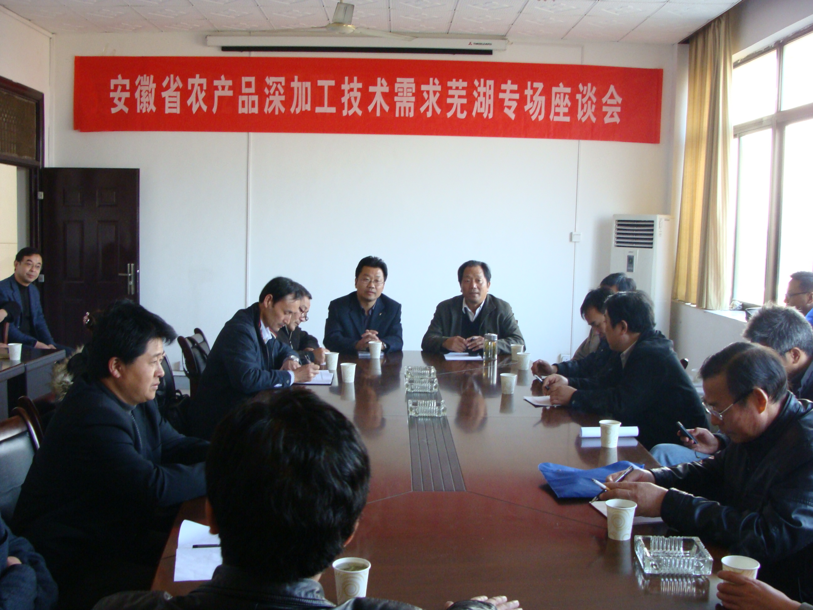 11月17日下午,安徽工程大学和芜湖市科技局共同组织了“安徽农产品深加工技术需求芜湖专场座谈会”。芜湖市6个区(县)的科技部门负责人、20多家农产品加工企业和安徽工程大学生物与化学工程学院相关专家参加了座谈会。 座谈会就此次农产品深加工技术需求进行集中调研,为凝练“十二·五”农产品科技攻关项目做准备。汤斌副校长对客人的到来表示欢迎,简要介绍了我校的基本情况,希望企业家走进校园,教师走出校园、走进企业。随后企业负责人就农产品加工相关技术难题、专业技术人才短缺、新材料检测设备、农产品深加工配套设备缺乏等实际困难与安徽工程大学相关专家进行了广泛的交流和探讨。 座谈会期间,科技局和企业负责人先后参观了我校现代分析中心、生物与化学工程学院的部分实验室,加深了对我校完善的科研条件和先进的科研检测设备的了解。参观过程中,企业负责人对我校的部分科研项目、科研成果表示了极大的兴趣,希望以后能加强联系,实现紧密合作。