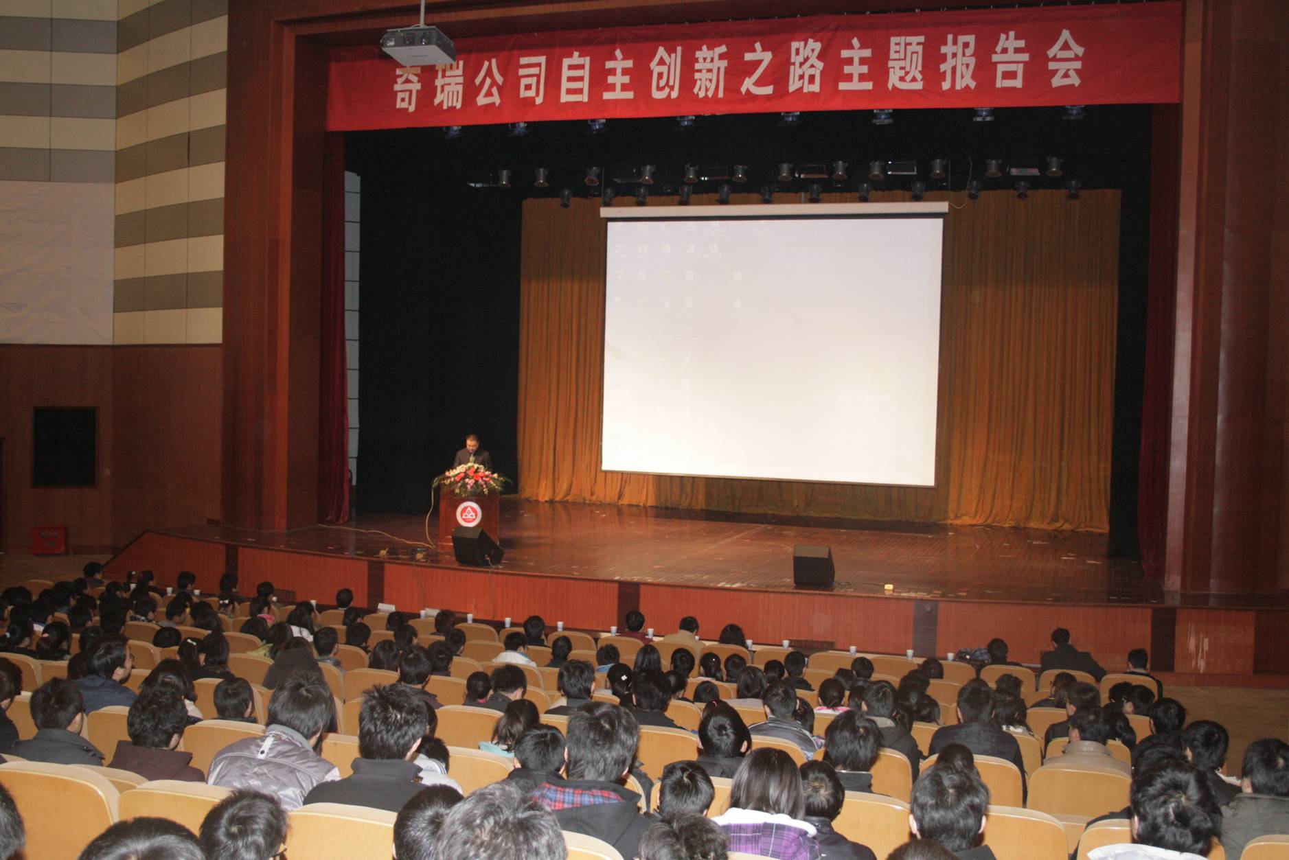 方琳在大会上作了激情洋溢的宣讲。他就奇瑞公司艰辛的创业之路、奇瑞人顽强的创业意志和永不停歇的创新精神,以及近年来奇瑞公司做大做强飞速发展状况作了深入浅出的讲解。并对这次举办“奇瑞班”的有关情况作了详细的阐释。而后,还与大学生们进行了互动交流。