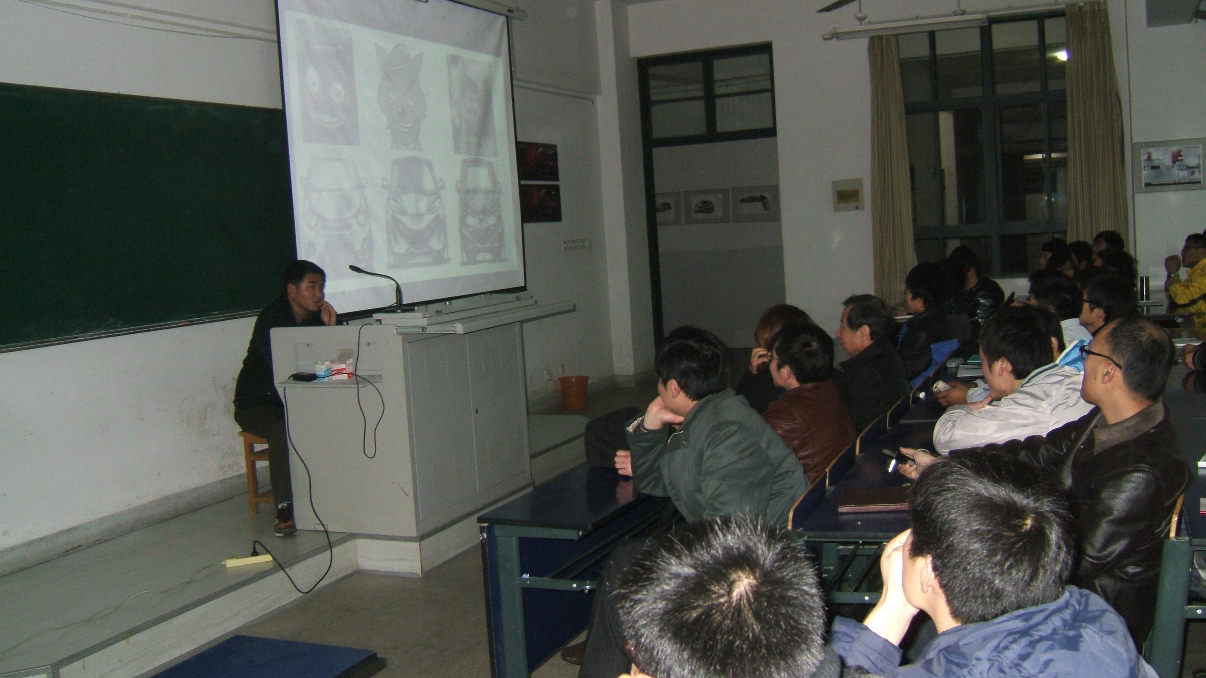 日本汽车造型师古贺先生历任日本日产公司汽车造型设计师,设计主管,目前任奇瑞汽车造型设计顾问,长期从事汽车造型设计研究工作,主持开发了多款日产汽车。报告中他以自己在日产汽车三十余年的设计主管经历讲述了现代汽车设计的关键问题,对中国汽车设计的前景表示乐观,并对同学们在学校的学习目标提出中肯的建议。奇瑞汽车造型师张乐乐是我校工业设计2005届毕业生,长期从事设计工作,曾任匹克公司设计师,现为奇瑞汽车造型师。他则重点对自己参与的一款即将投产的汽车设计历程做了回顾,并且鼓励同学们积极加入到我国民族品牌汽车的设计队伍中。两位设计师的报告深入浅出,轻松生动,受到师生的一致好评。两位设计师还就学生感兴趣的一些问题做了细致认真的回答。