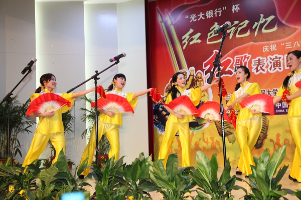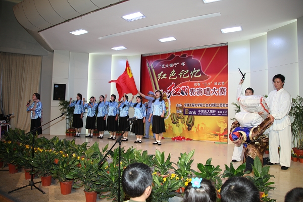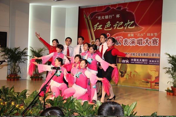 此次活动,是建党90周年系列活动的组成部分,又是“创先争优”在行动的切实体现。近日来校园里飘扬的歌声不仅展现了全校女教职工“爱党、爱校、爱家”之真情和积极为地方、学校建设发展做贡献的自豪感,而且也振奋了校园精神,增强了学校活力。