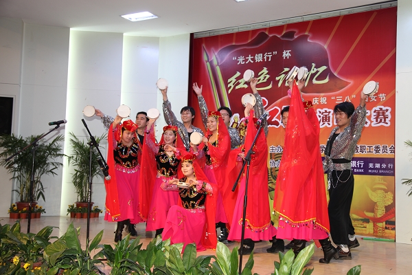 本次比赛结合建党90周年,以“追寻红色记忆,讴歌党的光辉历程”为主题,在各学院党委(各党总支)的高度重视和精心组织下,各分会在短时间内均组织了高质量的节目,比赛异彩纷呈美不胜收。校女工委委员和体育学院的同学们共同表演了开场歌舞《红色娘子军》。机关总支的表演唱《九九艳阳天》首先亮丽登场,以动人的歌声和优美的舞步拉开了比赛的序幕;随后出场的人文学院的《我们是共产主义接班人》以独特的创意和逼真的场景,带领大家一起重温了儿时难忘的入队仪式;外语学院用多种语言独特演绎了北京奥运会主题曲《我和你》;机电学院的情景歌舞《保卫黄河》,成功展现了中国人民抗击侵略者的伟大民族精神;计算机学院欢快的《洗衣歌》、管理学院深情的军旅歌曲《军港之夜》和电气学院的优美歌舞《万泉河水清又清》则生动演绎了深厚的军民鱼水之情;纺服学院的《红歌新唱》用充满创意的老歌新词和道具设计展现了学校教职工的在学校建设征途中的奉献和激情;艺术学院身着亮丽的维吾尔族服饰展现的歌舞《打起手鼓唱起歌》艺术地再现边疆人民的笑语欢歌;体育学院的老师们则在优美的《十送红军》乐曲中展现了瑜伽运动之美;后勤总支身著艳丽民族服饰多声部精彩演唱的《爱我中华》和数理学院深情演绎的《我和我的祖国》充分表达了教职工对祖国的深深爱恋;教辅总支则诙谐生动地演绎了反映我国第一代汽车人的脍炙人口的歌曲《五十岁的老司机》;载歌载舞的机械学院红歌联唱《颂歌献给毛主席》真切表达了对领袖毛主席的崇敬和爱戴;生化学院的情景表演唱《唱支山歌给党听》最后压轴出场,将比赛气氛推向了高潮。校工会青工委助兴表演的《劳动最光荣》和比赛中穿插的抽奖环节为现场增添了快乐的节日气氛,两位主持人的机智串联也让比赛更显温暖和欢乐。