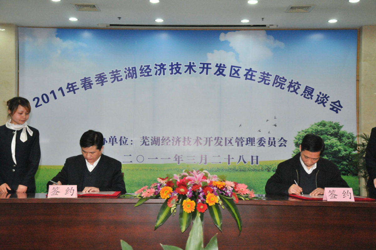 会议由开发区党工委副书记叶政林主持。市人大常委会副主任、开发区党工委书记、管委会主任杨良文详细介绍了开发区发展状况、人才需求以及十二五发展目标。目前,开发区共建成投产规模以上工业企业235家,其中三资企业91家,包括18家世界500强企业和35家国内上市公司和一批知名跨国公司,形成了特色鲜明的汽车及零部件、家用电器、新材料三大优势产业。在全力打造上述三大优势产业的同时,正着力培育节能环保、电子信息、生物医药、装备制造等新兴产业。开发区将通过开展订单培养,开办“企业冠名班”,建立企业教学点,促进专业方向调整,推进政策机制完善等方式加强与学校合作。 会上,开发区管委会与安徽工程大学、芜湖职业技术学院和芜湖市教育局签订了校区合作协议。