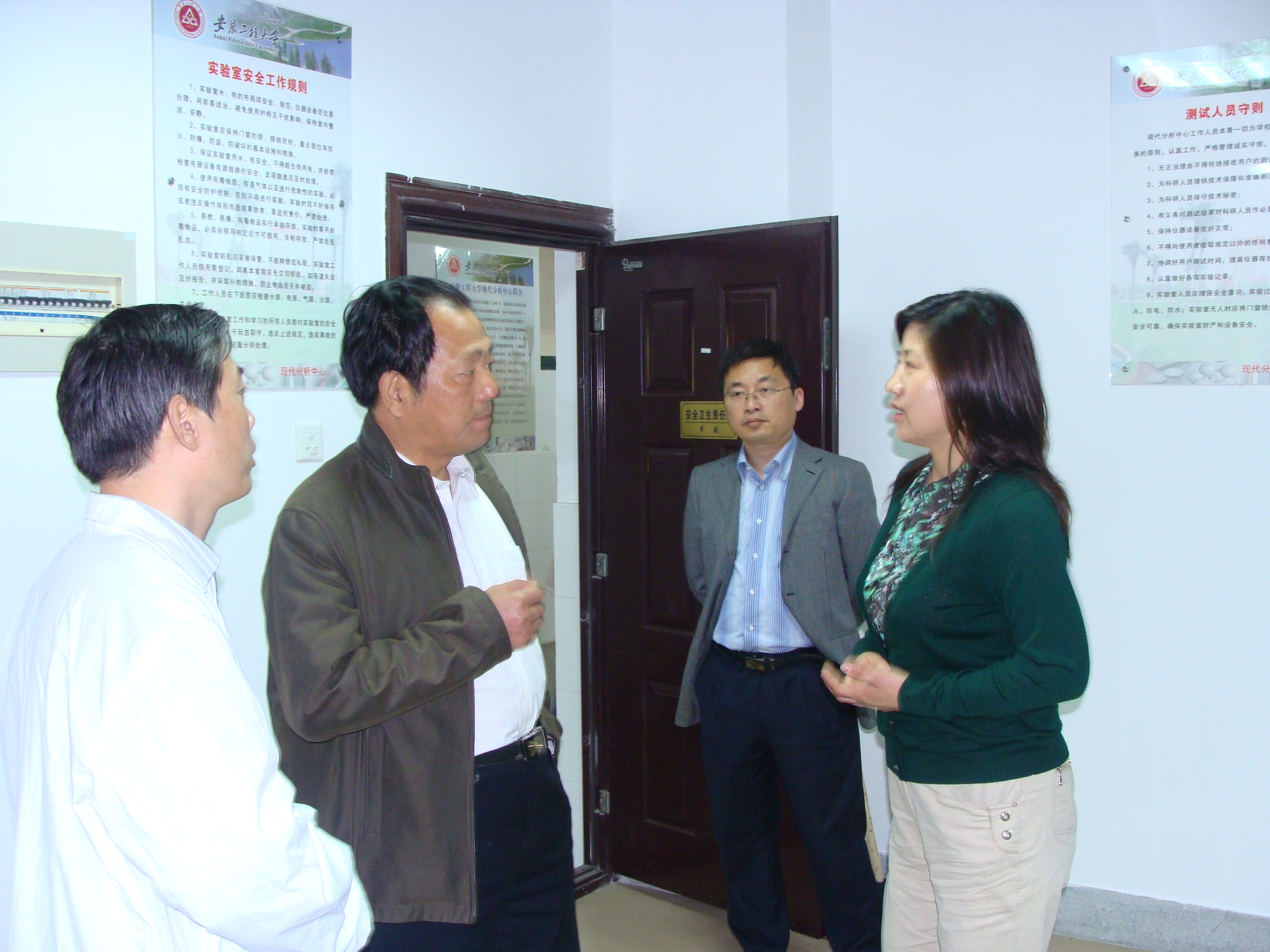 4月16日下午,安徽省质量技术监督局认评处董丽娟副处长在汤斌副校长的陪同下考察了我校现代分析中心,认真听取了中心的汇报,并对中心有关申请实验室资质认定工作提出了合理的建议。