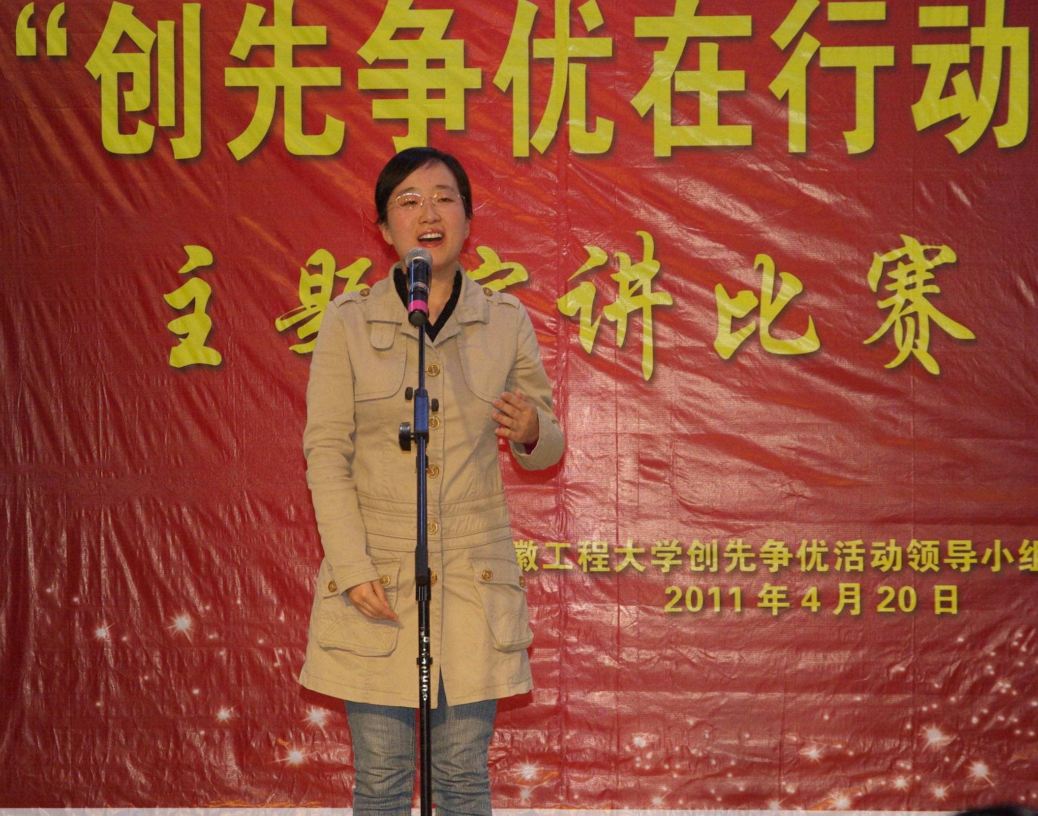 在教工组演讲会的现场,选手激情澎湃,观众掌声如潮。经过各党委和党总支的认真选拔,共有15名选手参加了本次比赛。参赛选手们紧密围绕演讲主题,立足本职岗位,结合自身实际,生动阐释了“创先争优”活动开展以来自己在教学、科研中的所见、所闻、所感。选手逐一登台演讲,交流了各党委、总支在开展“创先争优”活动中的做法和成效,宣传了身边党员在“创先争优”活动中的感人事迹,阐述了自己对深入开展“创先争优”活动的认识和思考,表明了自己在推动学校事业发展中努力争先进、当表率、创佳绩的信心和决心。