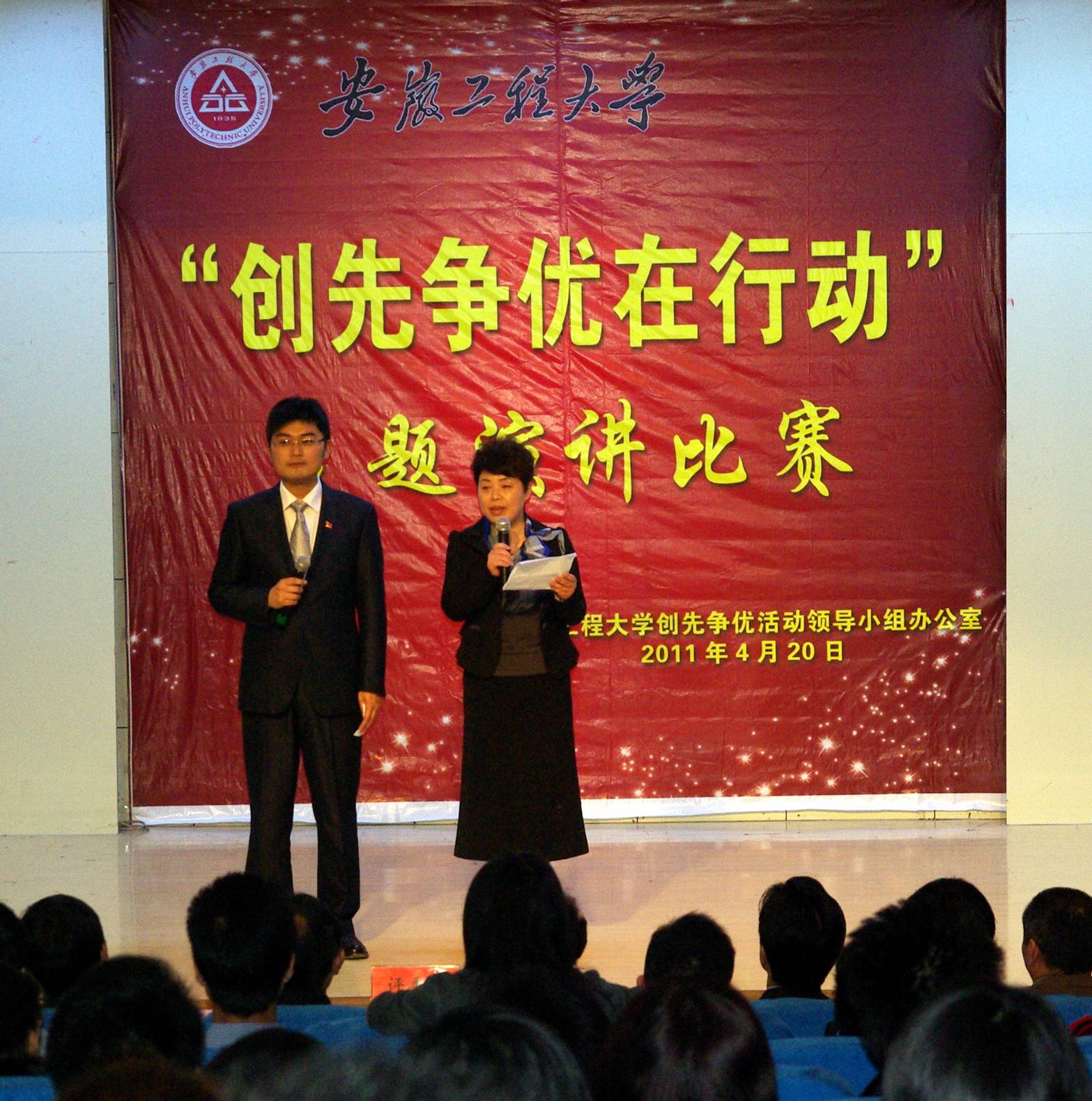 与此同时,“创先争优在行动”主题演讲会(学生组)比赛也在学校第二教学楼内进行,共有来自12个学院的12名选手参赛。参赛学生精神饱满、表达流畅,他们结合大学生学习和生活实际,阐述了自己对开展“创先争优”活动的理解。同学们的演讲紧扣主题、积极向上,充分展现了我校学生党员的风采。最终,来自纺织服装学院的王肖莉和数理学院的李斌获一等奖;管理工程学院的余朝庆、生化学院的于雪花、人文学院的陈亚男、艺术学院的张琳琳获二等奖;其他6位选手获三等奖。