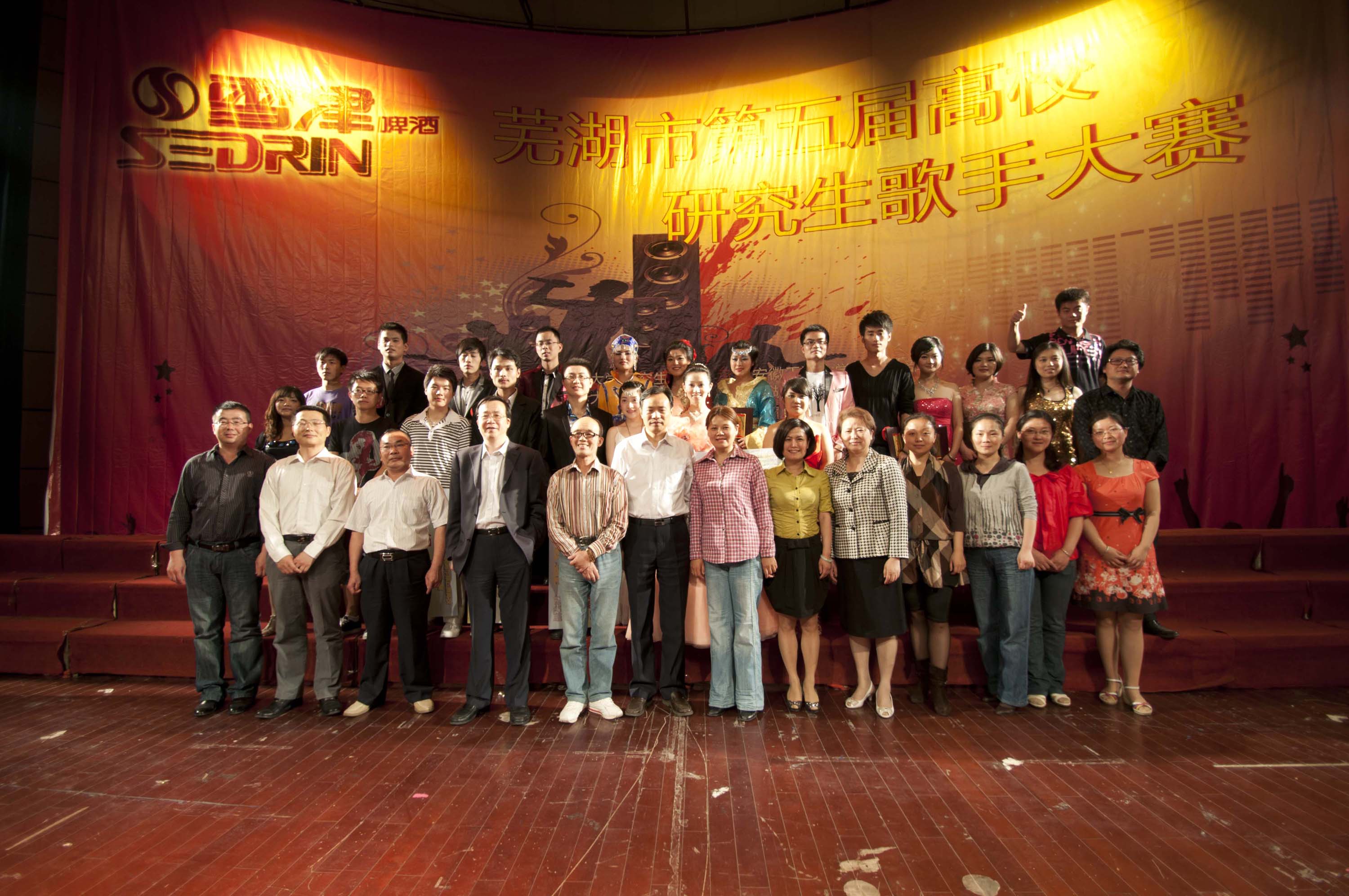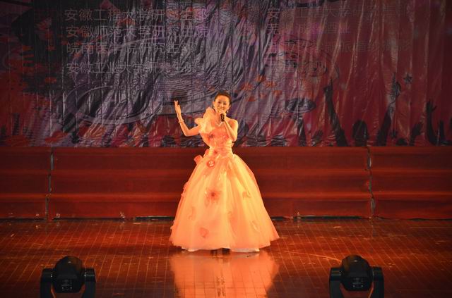 来自安徽师范大学、皖南医学院和我校的17位选手次第登场,一展歌喉。既有经典爱情歌曲《我只在乎你》、《心如刀割》、《天意》,也有经典民歌《我和草原有个约会》,歌颂祖国的“红歌” 《红旗飘飘》,乡村音乐歌曲《I'm gonna getcha good》,还包括寄托爱情和思乡之情的《美丽的神话》、《愚人码头》、《至少还有你》、《想家的时候》等。选手们凭借着自己独有的青春个性,演绎个人独有的风格,向观众展示不凡的实力与水平,博得了场下观众的阵阵欢呼与喝彩。安徽工业大学的同学还为我们带来了吉他弹唱《姑娘》,独唱《荷塘月色》两个嘉宾节目。经过激烈角逐,我校选手胡伟获得二等奖,王璟珺、俞联,张晓晶,夏琴琴,王筱薇倩获得优秀奖,王璟珺、俞联获得最佳服饰奖。