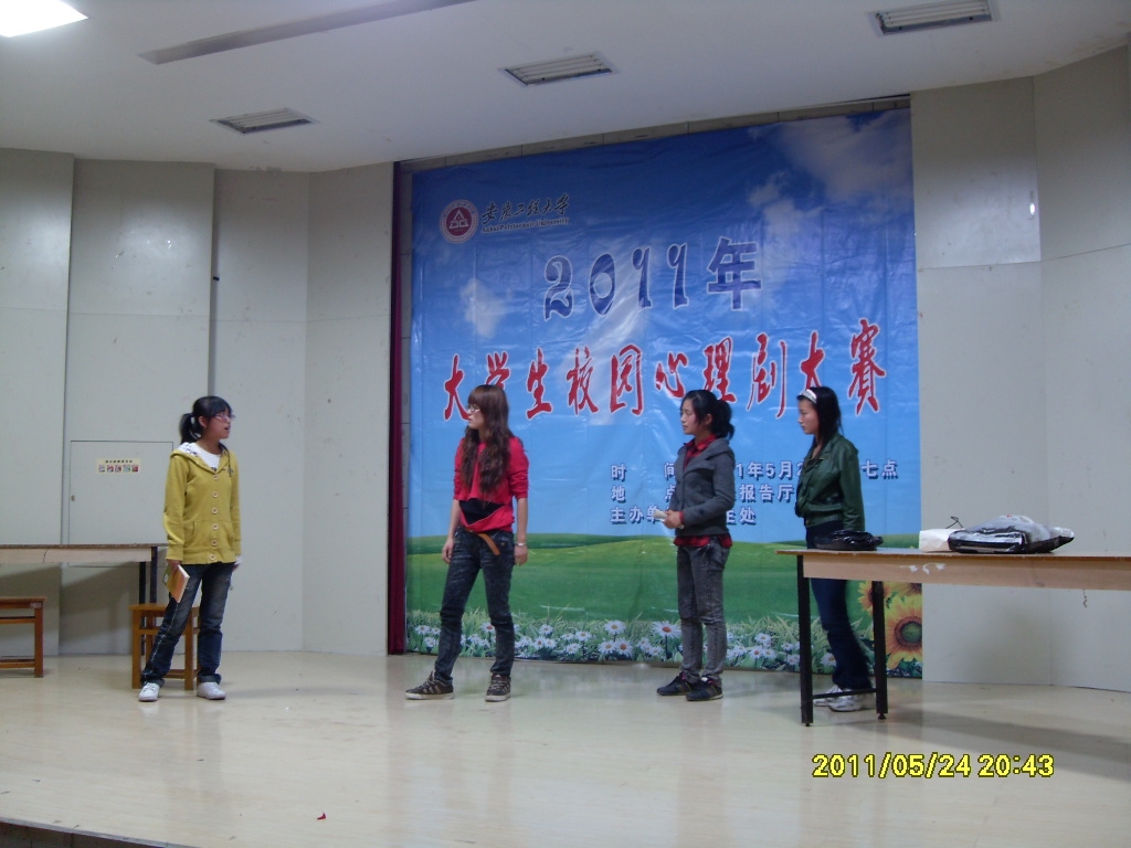 各参赛队的表演紧扣主题、内容健康、贴近生活,反映了当代大学生在学习、生活、人际交往等的心理现象和走出心理困惑的历程,表达了同学们奋发向上,阳光生活的积极心态,引起了全场同学的共鸣,会场不时响起阵阵掌声。经过评比,管理工程学院的同学的《破茧的梦想》以其深刻的寓意和精彩的表演夺得一等奖;人文学院、生物与化学工程学院参赛节目荣获二等奖;外国语学院、机械与汽车工程学院、艺术学院参赛节目荣获三等奖;其余参赛节目获得优秀奖。