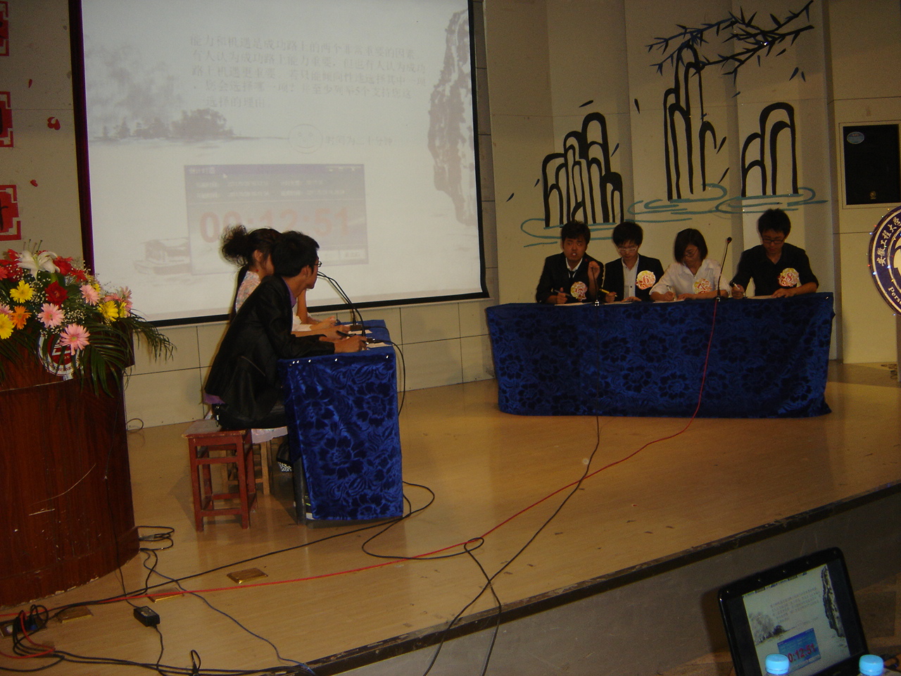 比赛中,选手们激情飞扬的演讲和制作精美的ppt展示向观众诠释自己职业理想、职业路径和实施方案等,展示了大学生积极向上的精神面貌;从国际贸易单证师到成功的营销人员,选手们职业理想虽不相同,但为之奋斗的昂扬斗志和缜密思考却是相同的,台下不时响起热烈的掌声;之后的“无领导小组讨论”更是体现了选手们的表达能力,大家各抒己见,思想火花的碰撞,把现场的气氛推向高潮; 最后,分别由程辛微、许配俊