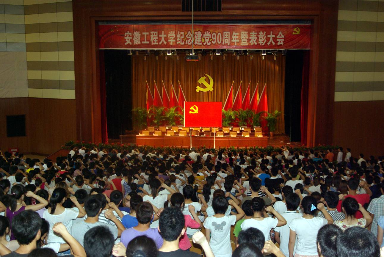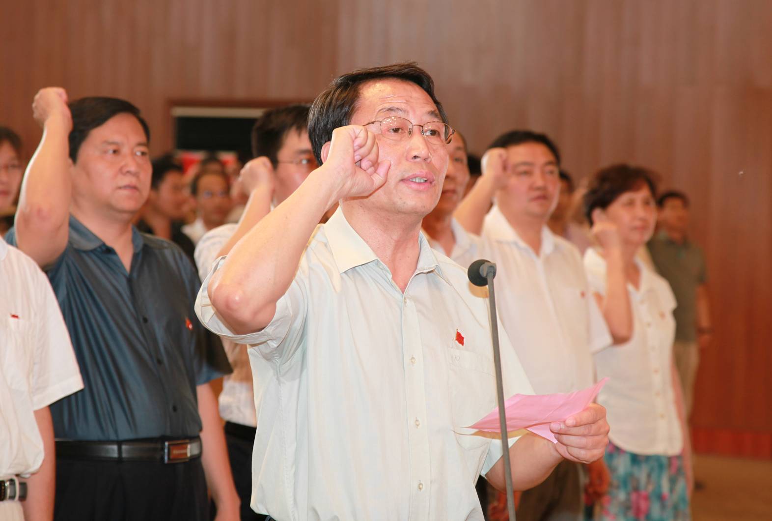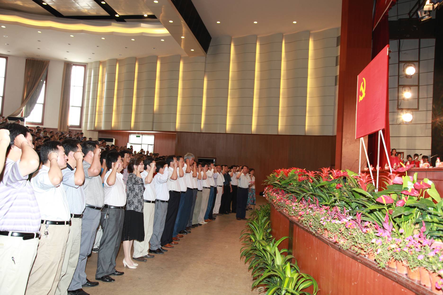 在全体起立,奏唱国歌之后,校党委副书记、副校长方友实带领新党员宣誓和老党员重温入党誓词。在这庄严的一刻,现场的气氛显得格外凝重。一千二百名师生党员高举右手握紧的拳头庄重地向党宣誓。顿时,信念升起,热血沸腾。随着铿锵的誓言,为党的事业奋斗终身的豪情壮志在每一个人心中激荡。